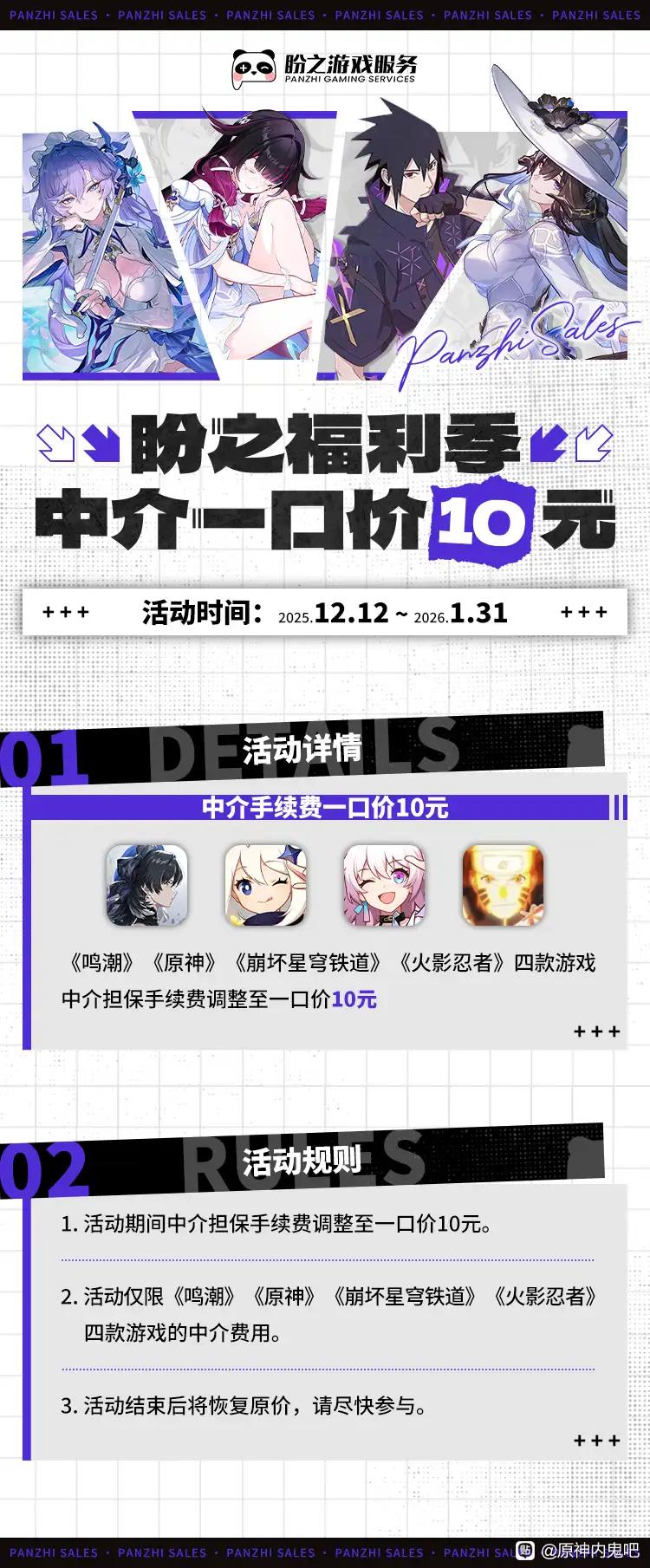 兄弟们,盼之的二游中介担保现在只要10r了,全网最低!
