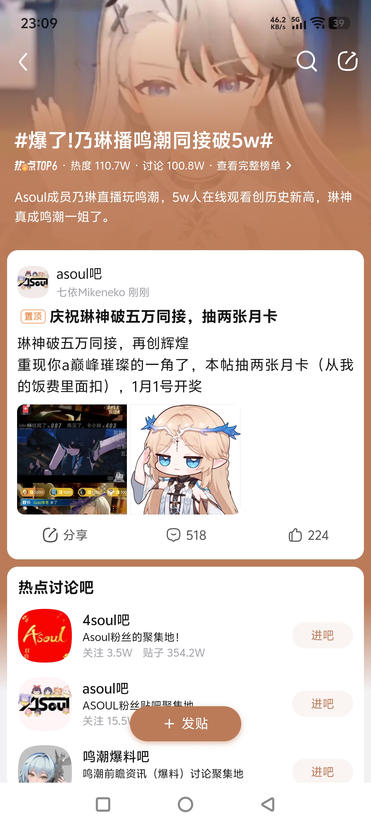 庆祝琳神破五万同接,抽两张月卡