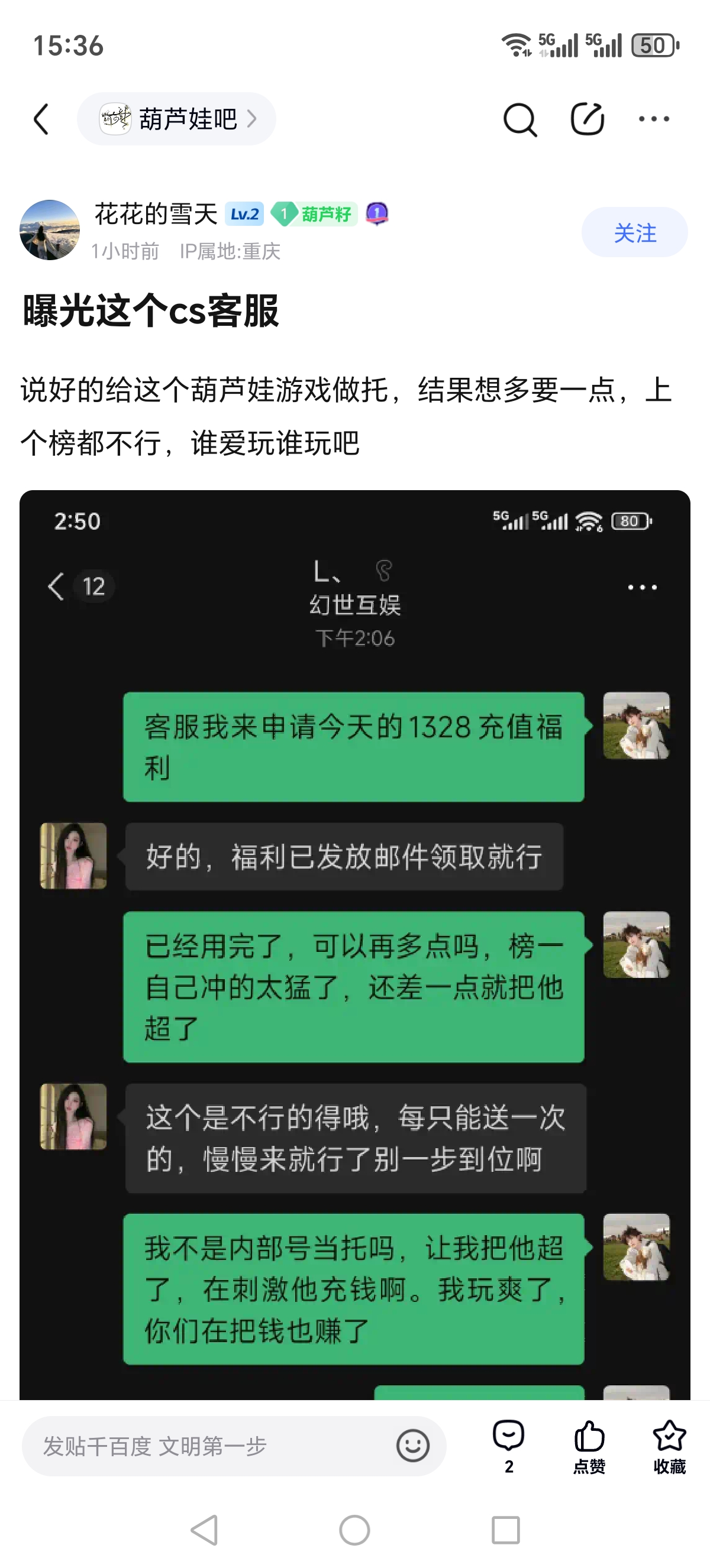 楼主兼最后回复:qi哈有 百度用户#434931097
