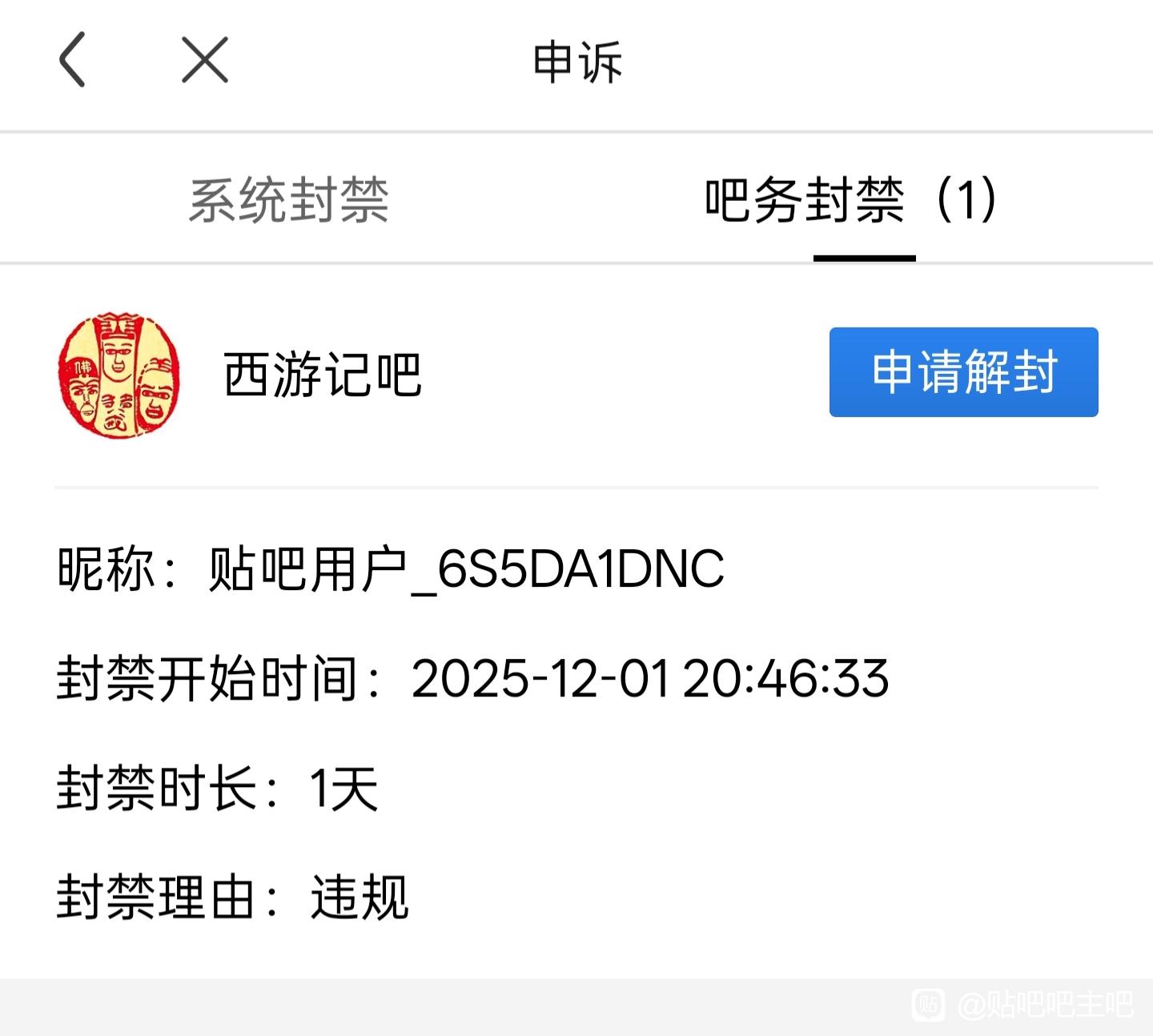 【10-12 | 求助咨询】西游记吧吧务,为什么每天循环封禁?