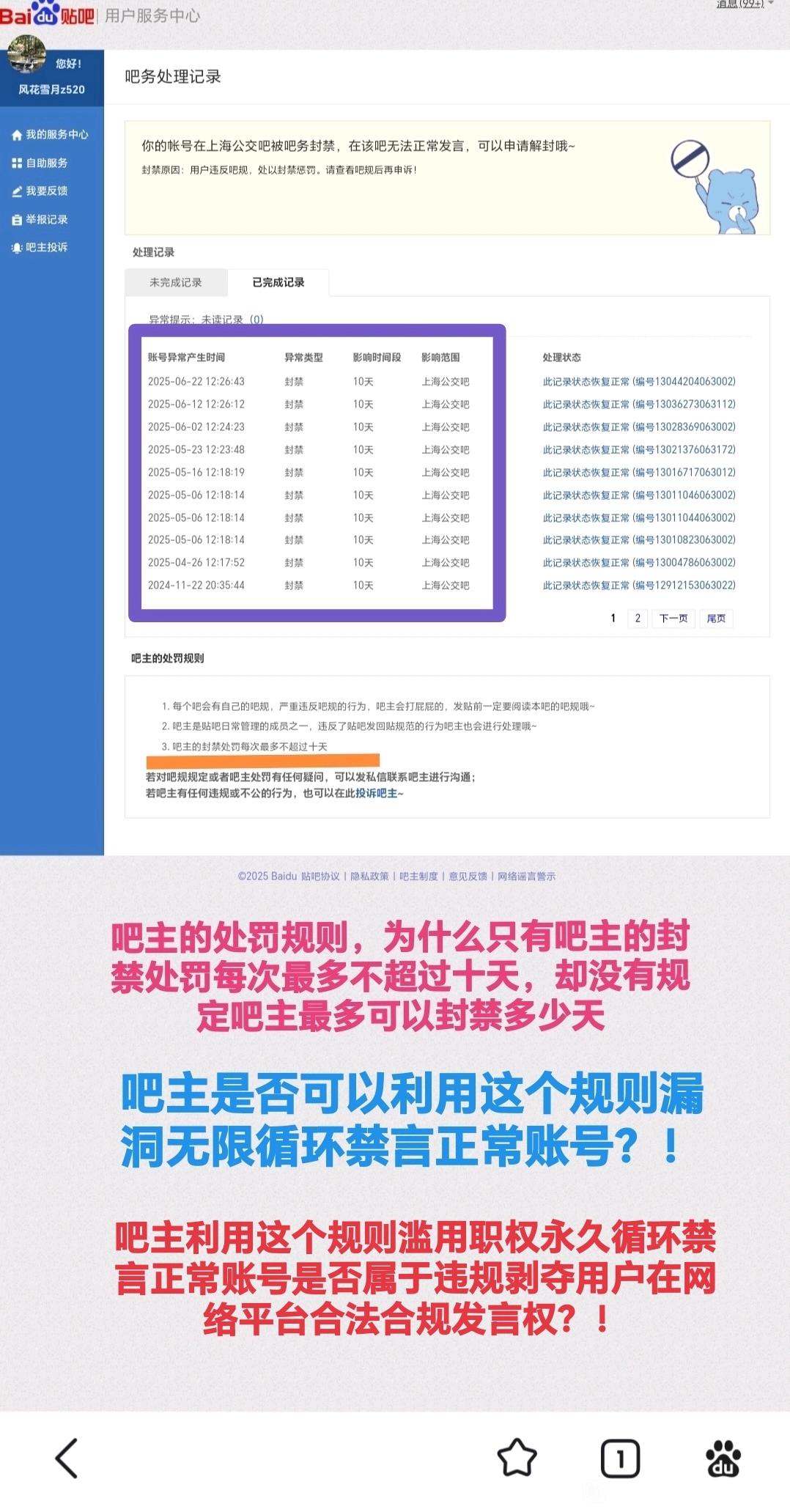 上海公交吧吧主想利用处罚规则的漏洞永久循环禁言正常账号