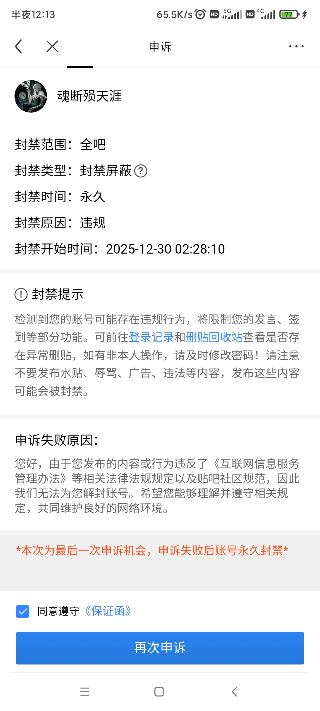 我还见过几个更搞笑的,被莫名其妙封禁七天的时候跑去点申诉,结果第一次申诉不通过直接改成永久封禁。