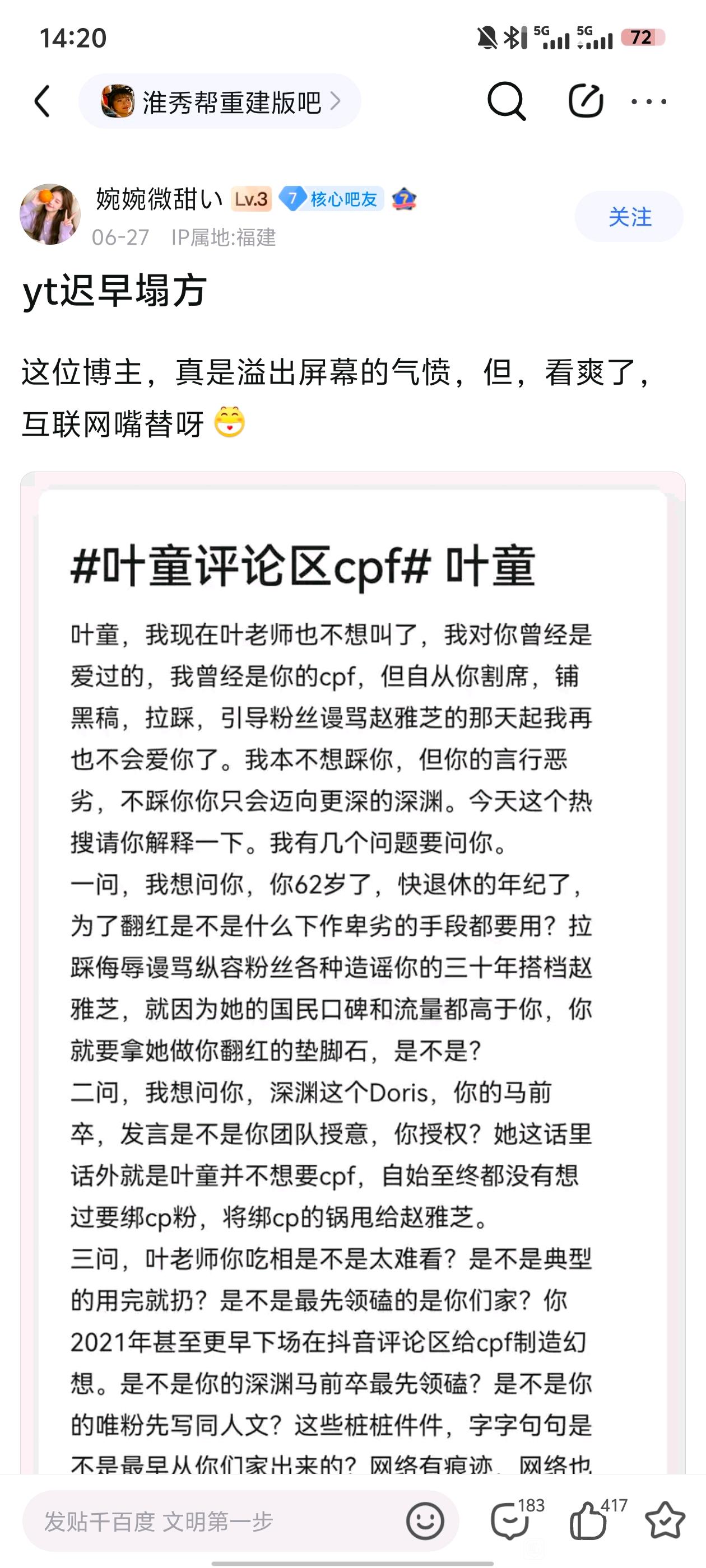 举报【淮秀帮重建版吧】,里面存在了大量的造谣信息,涉嫌造谣传谣