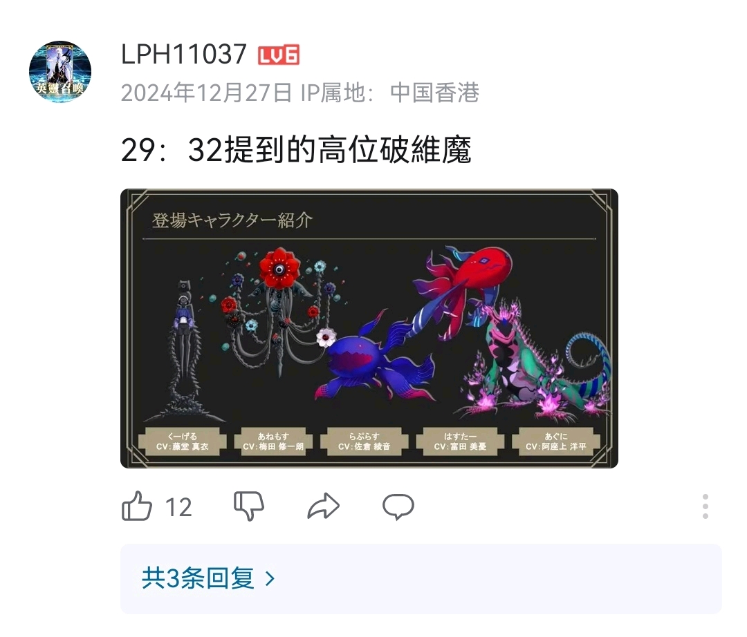 vtuber自由讨论吧 [魔怔]花组个人记录tid:97727388982025/06/08 00:37:211751503 6 0楼主:皆为星辰 回归的进行曲最后回复:贴吧用户_a68AX2P2025/08/08 02:38:55109楼pid:1522200461572025/06/10 15:42:13皆为星辰回归的进行曲 楼主 4级 该游戏与“神椿市建设中regenerate”共享世界观与剧情。音游剧情是“现象”中为期一年的“里世界”,而后者与七月番是“现象”中仅存在7天的“表世界”,设定中存在“表世界”->“黑寂”->“里世界”->“现象”->“表世界”的毁灭与再生的循环。