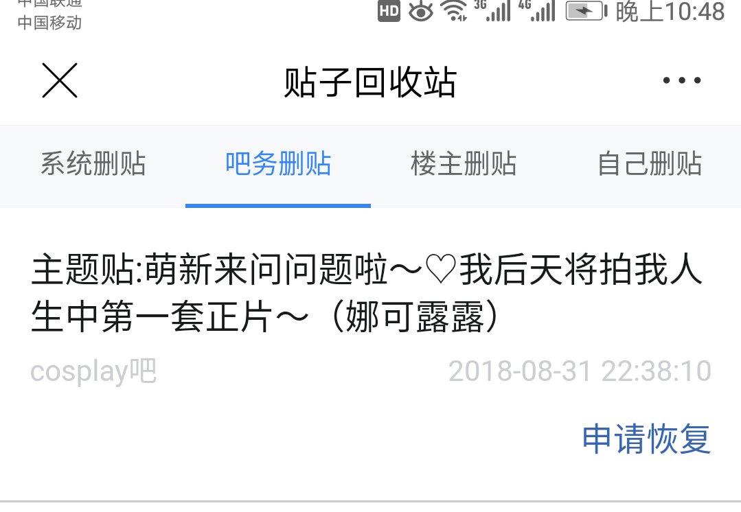 cosplay吧 精品【吧务】各位小伙伴们对自己帖子被封禁/删除有疑问的在此询问tid:55473164652018/02/10 10:46:131092989 28 37 1楼主:为啥酱油总被打最后回复:xz9uw3 不等你😁2019/06/02 10:01:5339楼1条pid:1217681971802018/08/31 22:49:27舟瑟魂周某某💕8级 请问这个。。有啥不对嘛。请指正!月白緢14级 格式,以及有专门的小白咨询贴。可以先看吧规再提问吗?