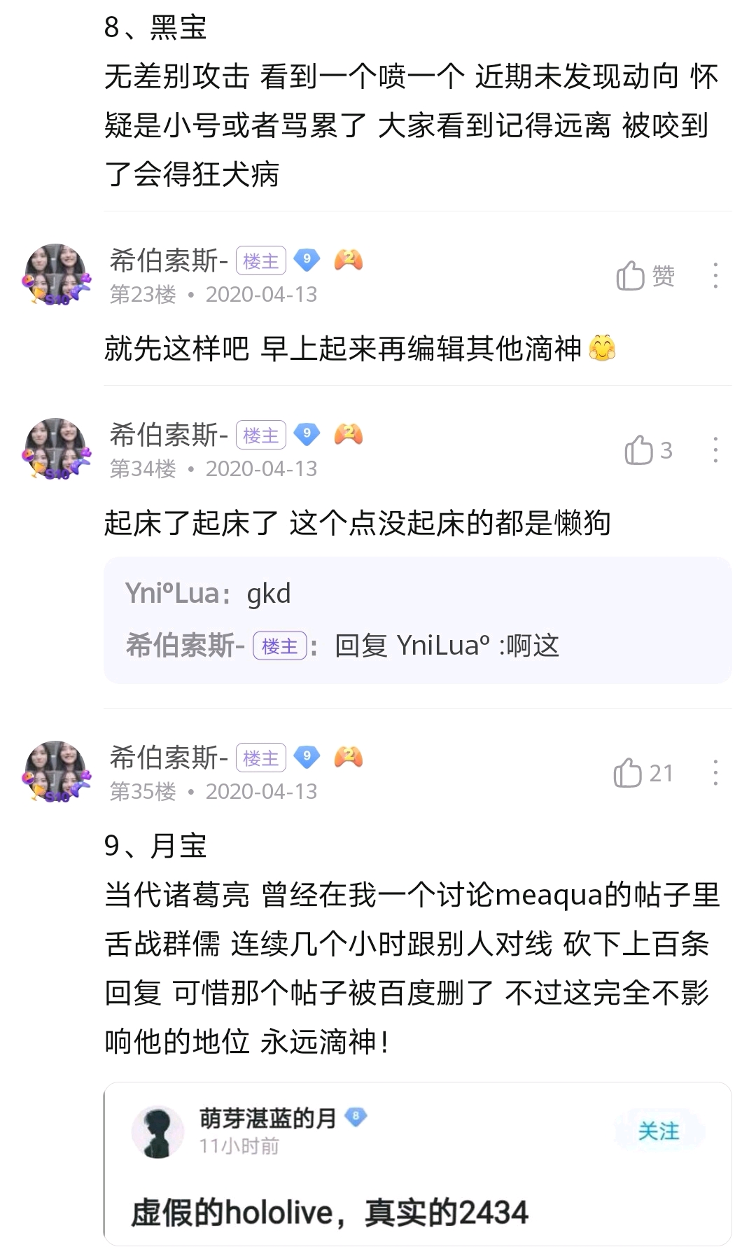 vtuber自由讨论吧 精品【个人回忆录】我对V吧的所见所闻所感tid:72070354812021/01/26 21:08:0785132822 17 495 3楼主:老李汉闯天涯 绝罚者✆14级 最后回复:赤红武力 🐴玛利普贝当🌈2025/11/22 01:58:0858楼19条pid:1376673698962021/01/27 17:06:45老李汉闯天涯绝罚者✆ 楼主 14级 EIDOS411级 除此之外还有一个叫三千啥啥的也是著名NT,自称肖战粉。在前不久虚吧动乱时还出现过