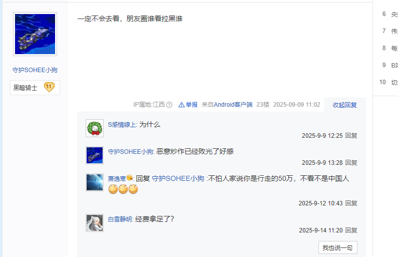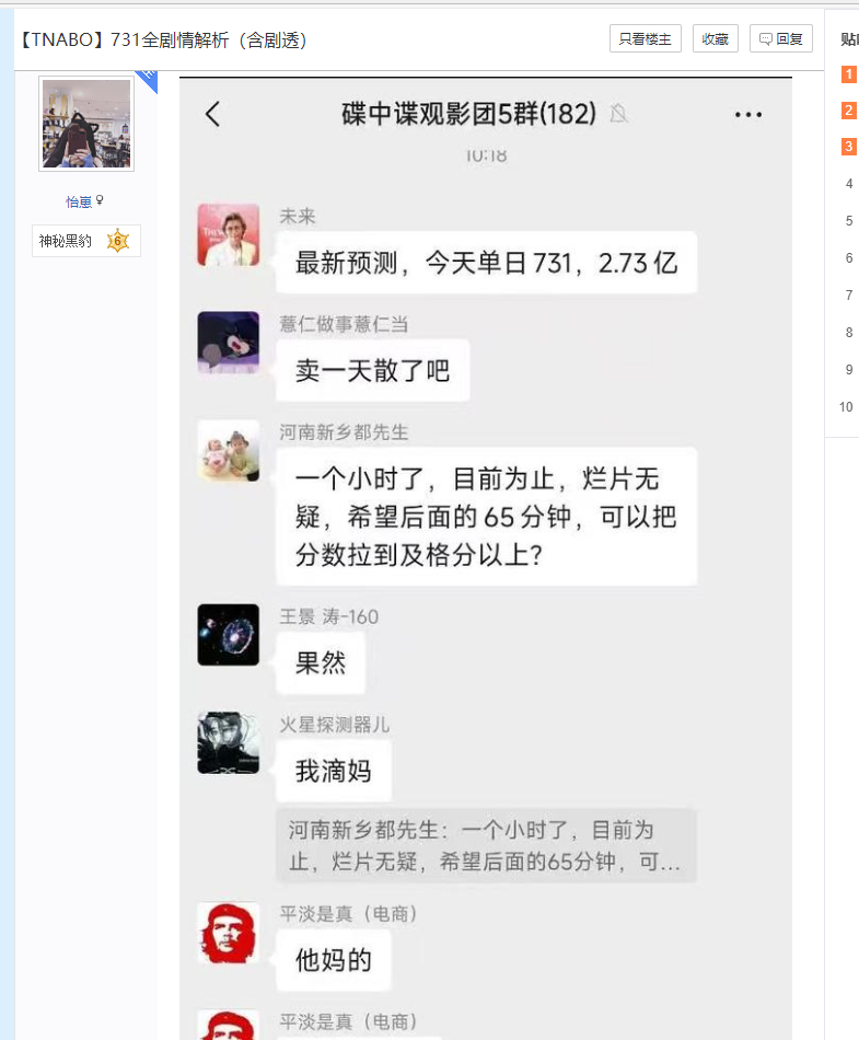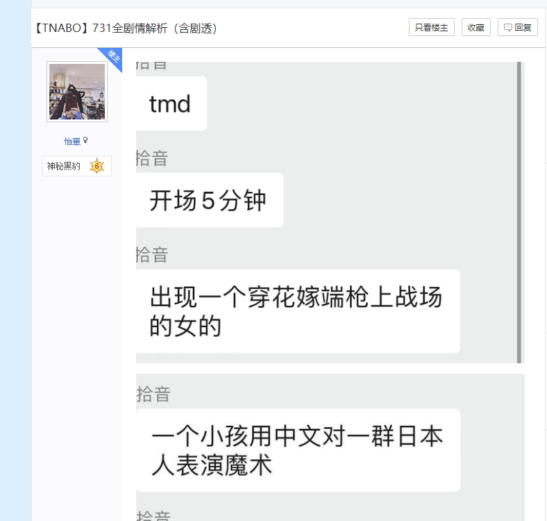 贴吧意见反馈吧 “北美票房榜”吧,充斥着大量并长期抹黑“731”电影的帖子和人tid:100496236542025/09/18 12:39:572548 4 0楼主:斳小月 白雪静明最后回复:高雅exoz 曼珠沙华ლ♤2025/12/23 02:51:351楼pid:1526406808132025/09/18 12:39:57斳小月白雪静明 楼主 2级 2楼pid:1526406847222025/09/18 12:41:14斳小月白雪静明 楼主 2级 这还只是部分造谣抹黑内容,其中不仅有抹黑造谣无端谩骂“731”电影的,甚至还有其他崇洋媚外,踩中捧洋的回复以及帖子libo6666881级 回复 :***了是吧,阿萎骡狗迷,主子偷金球死孩子,你也断子绝孙是吧3楼pid:1526428807882025/09/19 00:07:18贴吧用户_a73JAaS1级 这上面说的不是事实吗?4楼pid:1527126430492025/10/08 01:45:57宝庆忍一白度15级 还用黑吗?这片子有问题5楼pid:1527165652832025/10/09 07:56:51Mandalor阿维罗是父姓1级 那我就祝福您以及您的家人 身边全是像罗哥一样优秀的人吧 您应该也会愿意的吧10楼pid:1530104230112025/12/23 02:51:35高雅exoz曼珠沙华ლ♤2级 731这种烂片不该骂?