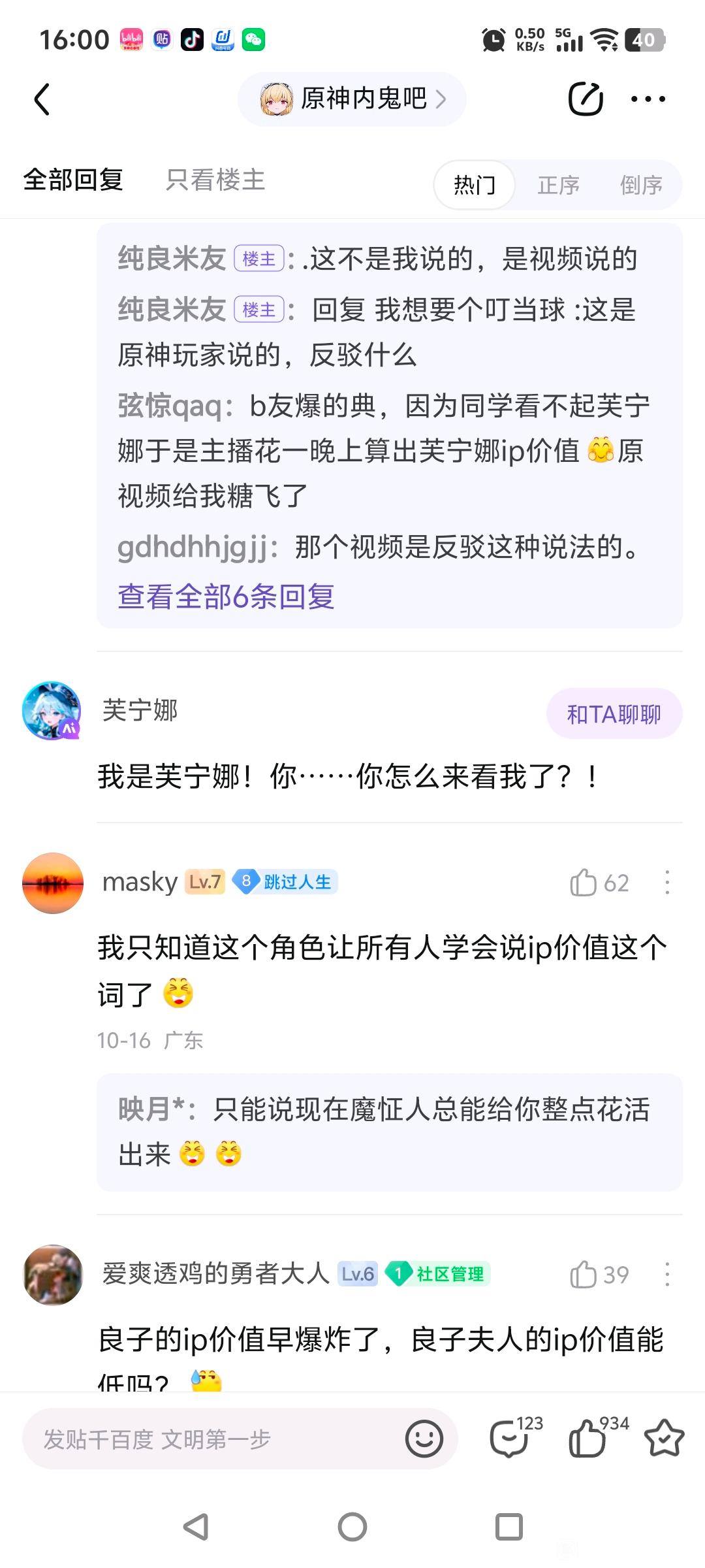 410527z 51806笑死了,又米孝子上了,你就是这么说你爹的你跟我说火的原因是一年全男后第一个女的,那怎么厨子大部分都是云呢是因为圈外人一年没看到原神的新角色本子饥渴了吗?而且厨子女的占比也不少吧,你的意思是,不仅圈外人一直关注原神每个新出的角色还全是拉拉吗?