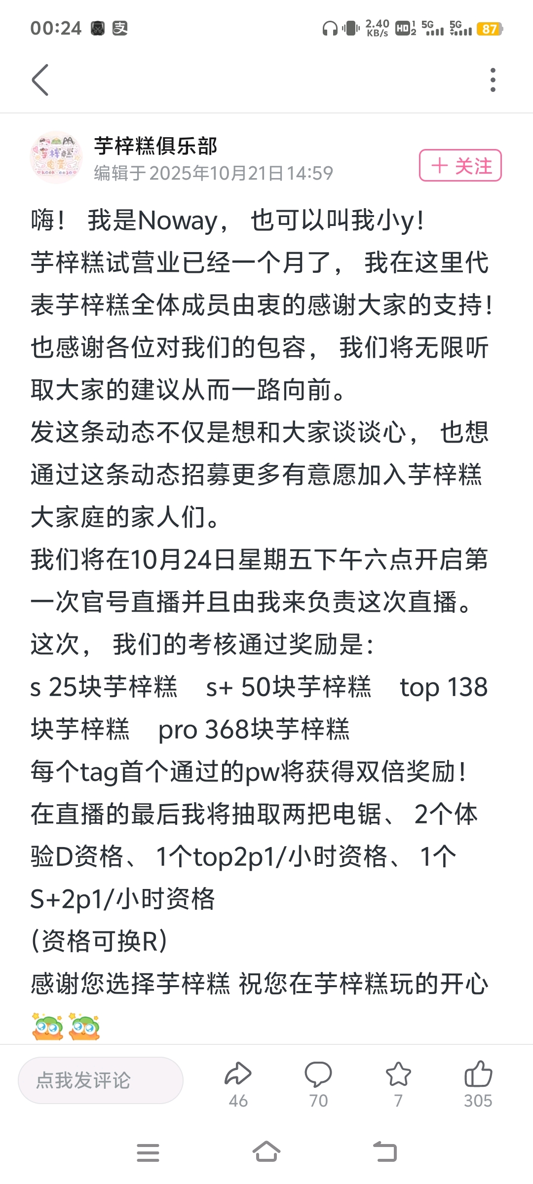 vtuber自由讨论吧 5.10.21 个人v圈见闻tid:101490906012025/10/23 00:18:516447 2 0楼主:伦琴_Official 伦琴Rontgen11级 最后回复:xuansAzusa 特别的她º2025/10/24 23:24:501楼pid:1527687681132025/10/23 00:18:51伦琴_Official伦琴Rontgen 楼主 11级 记录所见所闻2楼pid:1527687694412025/10/23 00:19:15伦琴_Official伦琴Rontgen 楼主 11级 何意味虚环第一届第二次V圈扩大会议3楼pid:1527687743992025/10/23 00:20:51伦琴_Official伦琴Rontgen 楼主 11级 这个发晚了点无形的大手5楼pid:1527687854272025/10/23 00:24:33伦琴_Official伦琴Rontgen 楼主 11级 芋梓糕俱乐部招募中6楼pid:1527687887772025/10/23 00:25:45伦琴_Official伦琴Rontgen 楼主 11级 麻将全能王比赛🍵糕活动真多啊7楼pid:1527687924662025/10/23 00:27:03伦琴_Official伦琴Rontgen 楼主 11级 星瞳生日8楼pid:1527760896472025/10/24 23:24:50xuansAzusa特别的她º10级 沐生日会圆满完成(不谈数据)撒花。
