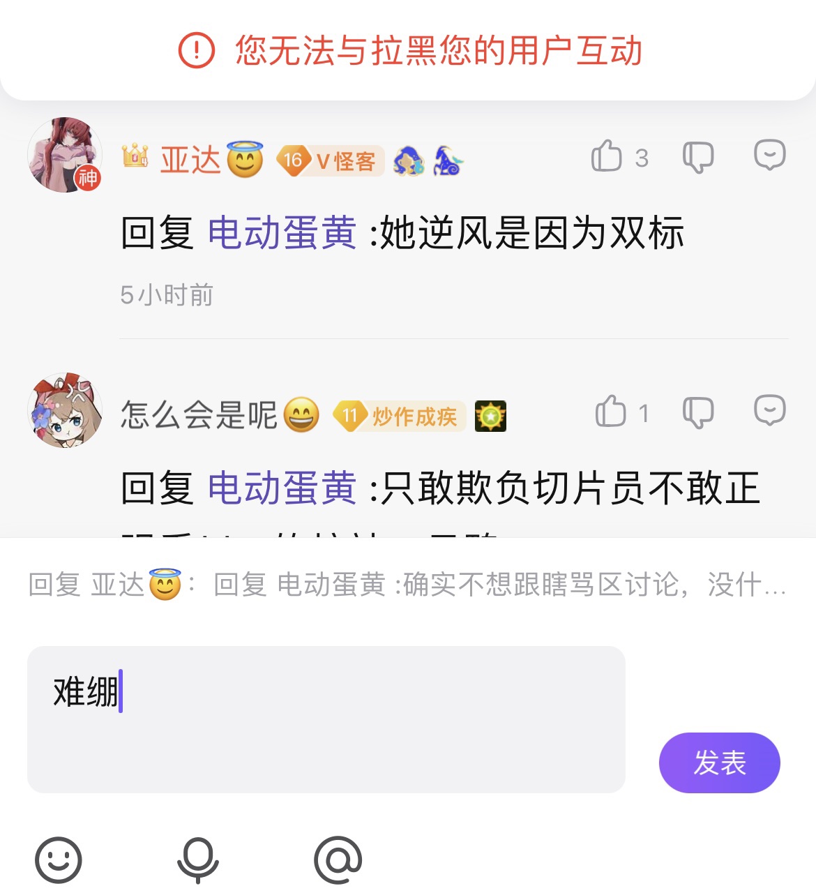 说不过就扣个帽子拉黑缩头的亚达宝宝一枚鸭