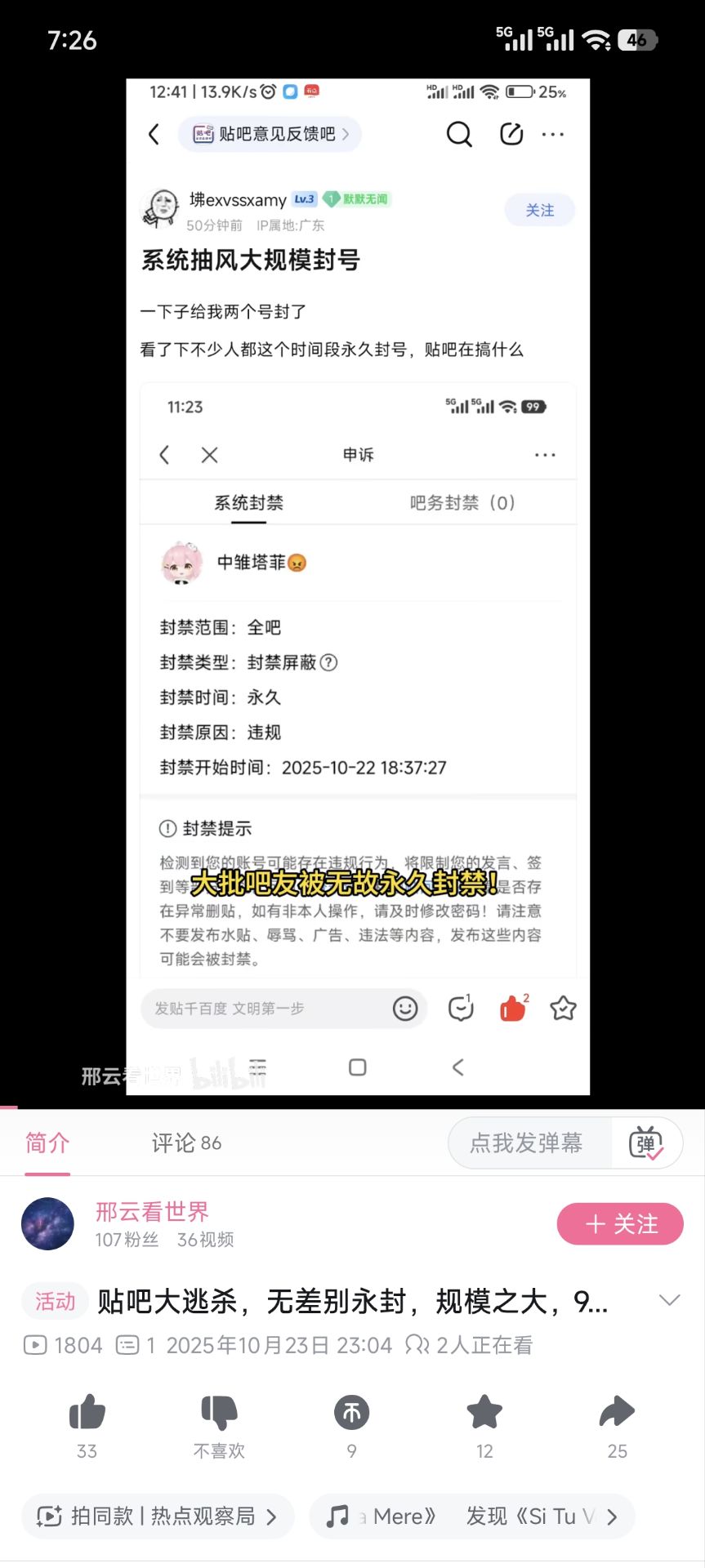 5楼pid:1528563232212025/11/14 15:13:11ebizs龙小宝.1级 我的大号也是那一段时间封号的(2025-10-22 18:38:41),也没有解封呀。昨天看你们说有一批解封的,就再申诉了一下看看,结果没给我过。现在想申诉也不敢申诉了。