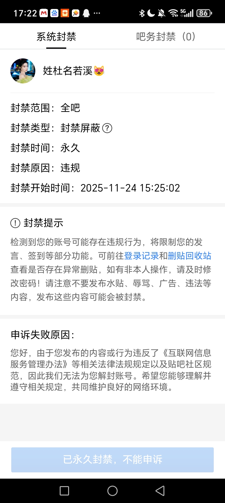 如果只有我极个别人被永封,并且多次自主申诉,人工申诉被驳回,我会更加绝望。