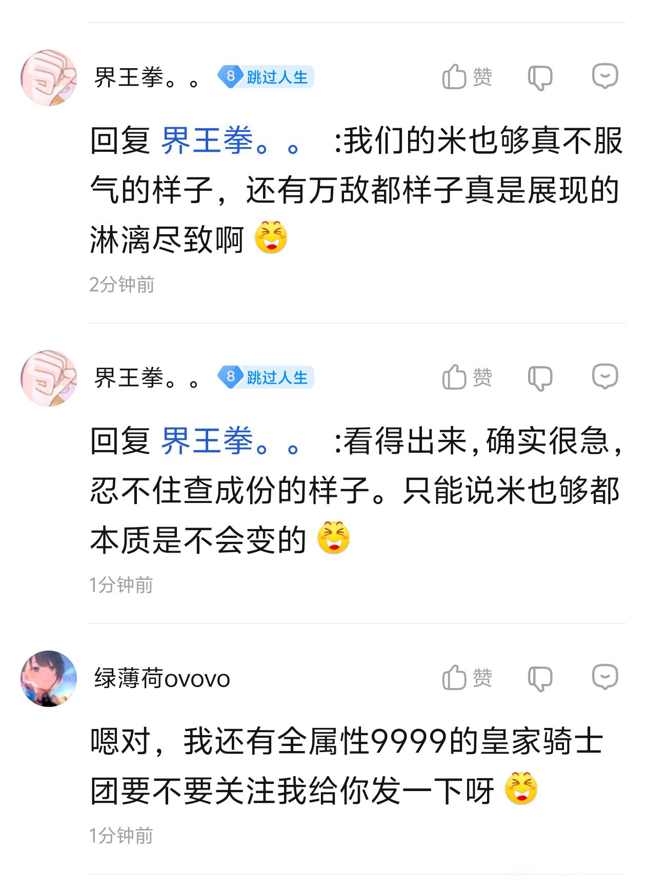界王拳。。回复:哪句话虚空索敌的呢,怎么上来就是岁月史书了呢。我只是实话实说罢了,但某些人红温得查成份的样子,然后口口声声说自己不是米也够。你觉得别人会信么