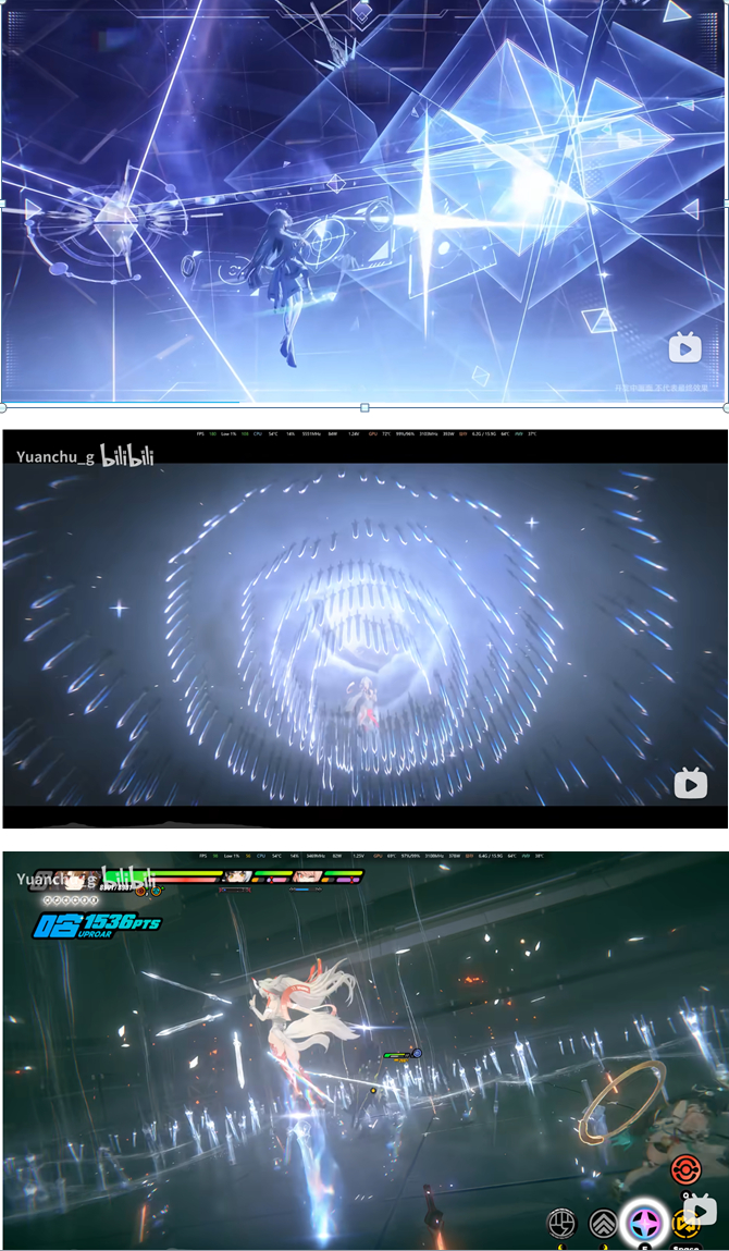 鸣潮的特效师,总是喜欢做饱和度和Bloom特别高的特效。会导致动画师精心借鉴哦不设计出的人物剪影,在场景光影偏灰的前提下,被浓烈的特效淹没掉,而且看着眼睛疼,其实挺可惜的。