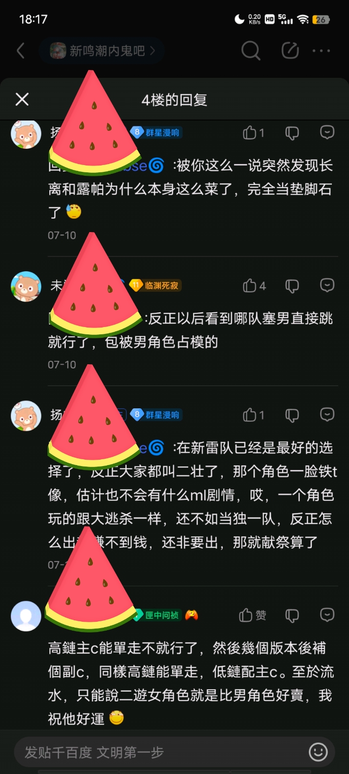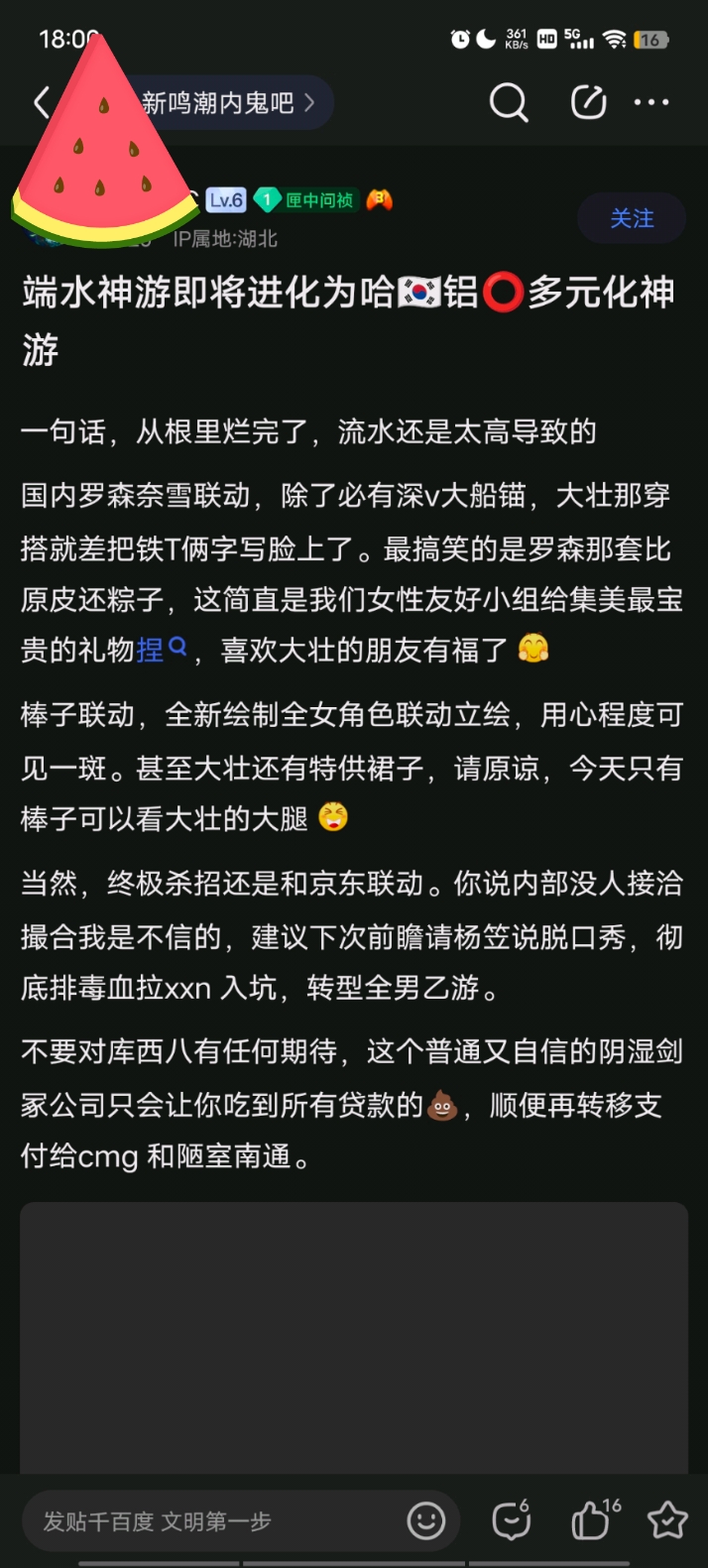 原神内鬼吧 来的新鸣也中笑话。tid:102725743072025/12/05 13:07:03151283 20 0楼主:长离无需多言 贴吧用户_J7K8PRZ最后回复:兰鸢82025/12/06 22:26:301楼pid:1529378346342025/12/05 13:07:03长离无需多言贴吧用户_J7K8PRZ 楼主 5级 为什么我们滑一个中一个呀2楼pid:1529379527282025/12/05 13:41:53不列颠妖精骑士神寂启示鸣神11级 新鸣野中常规操作,把滑错的删帖就无事发生一问就是十滑九中3楼pid:1529379864672025/12/05 13:51:33大爱我狂三sama无敌叩大王11级 新鸣也中会自动不等式的,这点和集美没有区别4楼pid:1529381214562025/12/05 14:29:29贴吧用户_JQVaKCV6级 5楼4条pid:1529400022092025/12/05 23:17:33555B11混沌之脑🌀1级 怎么还能看到摆烂的尘逸再好不过摸鱼 糖逗亻1级 一窝的,只不过孝的不是库洛罢了兰鸢8 凌子春11级 回复 混沌之脑🌀 :孝的是新鸣和角叠火筱煭 丸山伊芙初号机!1级 回复 凌子春 :甚至粥账号都没我高,孝米罢了兰鸢8 凌子春11级 回复 丸山伊芙初号机! :大胆,这可是103级方舟号在米大佐视频底下共振过的高手粥p,谁黑尘逸我沙谁6楼pid:1529406527452025/12/06 03:51:59加载界面卡住雪上霜º11级 都滑一遍总有中的7楼2条pid:1529406706842025/12/06 04:12:44兰鸢8凌子春11级 新鸣这帮玩意本质还是二游痴,而且他们还会在wuwa赖很长时间终末地不可能吸他们,异环有福瑞也不可能吸他们,无限大太远了,而且冈门的游戏男女肯定通吃也吸不了多少,更招笑的是这帮玩意据我了解很多是原神须弥出一年男角色还在捏着鼻子玩到4.8才退了玩wuwa的当op辣仙打完全不过分太宰治921 维什戴尔高手9级 你是不是搞错了,新鸣这帮b除了鸣潮什么都吹兰鸢8 凌子春 层主 11级 回复 维什戴尔高手 :8楼pid:1529406825162025/12/06 04:28:07自我滚粗1级 。。新鸣这吧和我看之前的原鬼吧是一个感觉,连多看一眼的兴趣都没有,装睿智还能串一串,这种真睿智感觉不仅精神污染还浪费时间9楼pid:1529409106002025/12/06 08:07:36太宰治921维什戴尔高手9级 穷举了一遍然后说自己全中吗,有点意思11楼pid:1529427833222025/12/06 17:48:25茶颜茶语°8级 滑是对的,一松手说不准又犯病了