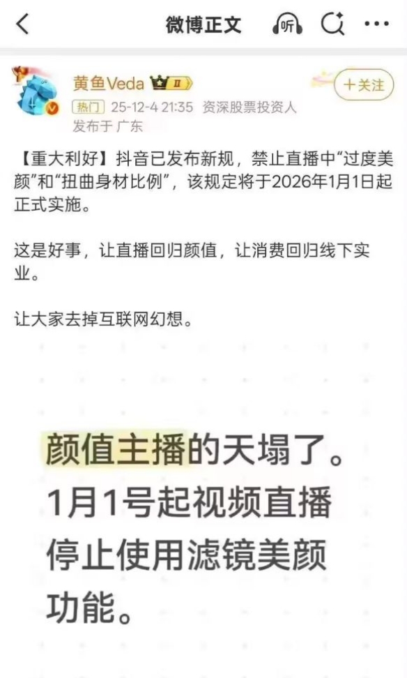 9楼4条pid:1529388735422025/12/05 17:58:59叶曦晨0414Yxc04147级 不懂就问,怎么执行呢,一个个去家访?咀们蓄电池 SusuAnders2级 抖音直接取消美颜功能不就完事了?叶曦晨0414 Yxc0414 层主 7级 回复 SusuAnders :手机可以取消电脑防不住啊咀们蓄电池 SusuAnders2级 回复 Yxc0414 :抖音还有电脑版?叶曦晨0414 Yxc0414 层主 7级 回复 SusuAnders :抖音有电脑版,用电脑开播的主播也有很多很多。