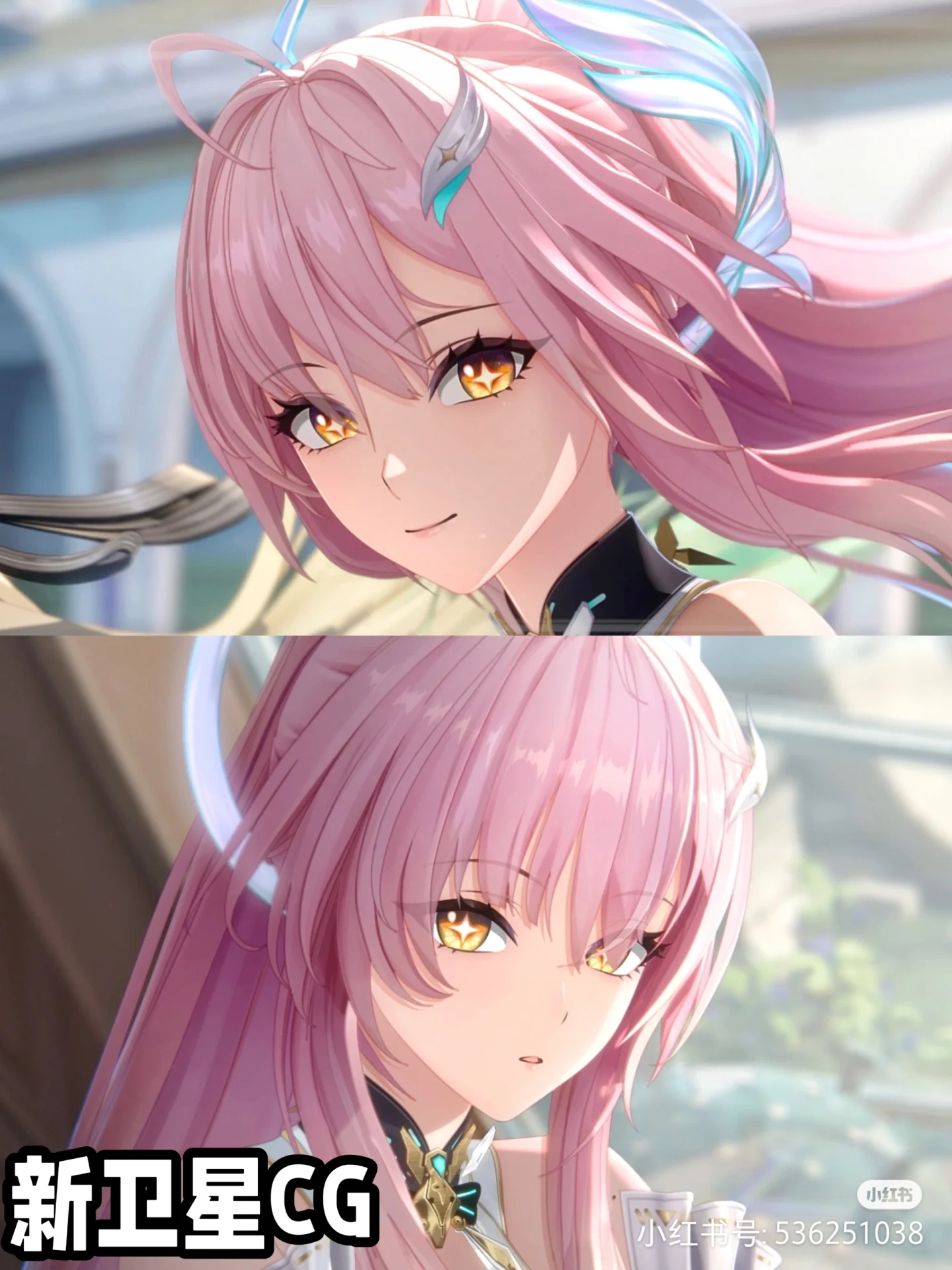 爱弥丝一眼抄的拉克丝克莱因,同样的粉毛、单马尾、歌姬、开机甲,甚至连发卡的位置都一样