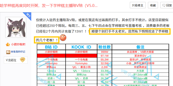提示(前几天我发的陪丸阵容表的帖子):趁芋梓糕再度同时开粥,发一下芋梓糕主播陪V陪(V5.0版)!!!