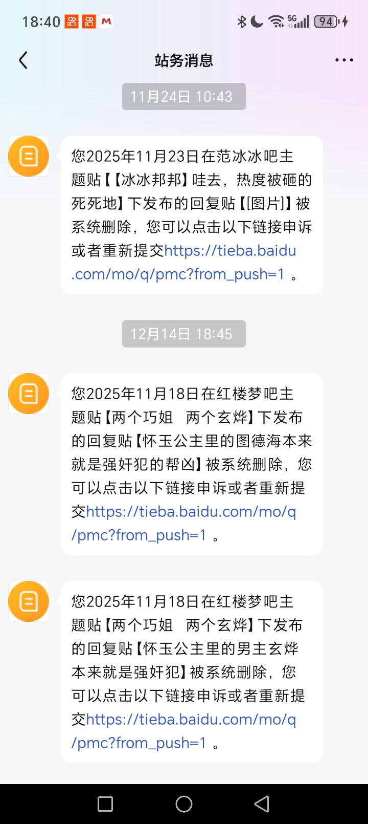 1楼pid:1529815337442025/12/15 18:51:32love宁珂宁珂寂寞沙洲冷 楼主 12级 我那个已经被子系统永封,自主申诉人工申诉电话申诉都被驳回的ID,并且屏蔽所有贴子的ID,最近收到几条系统删贴提醒。本来就已经被永封,以往所有贴子被屏蔽还能收到删贴提醒。还有一件事,我当时为了申诉解封,被B站上一个流氓骗了88.88,本吧的吧友【阿水】是帮凶,现在B站流氓和阿水都拉黑我了