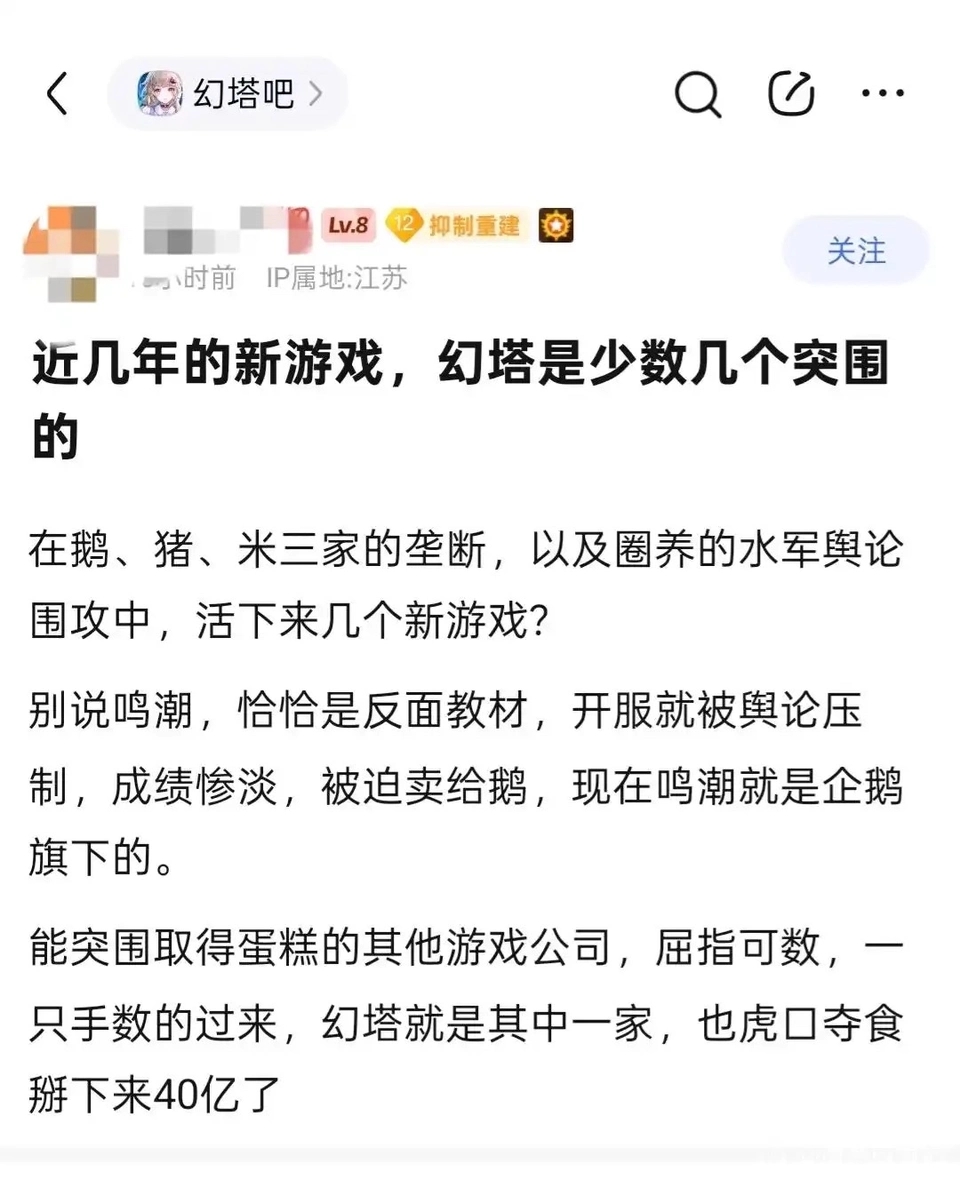 他说的确实没错,少数几个突围≠只有幻塔突围,我寻思到底是谁在原神的巅峰期反复多次承下了大量伤害?除了粥 谁敢说承伤高?你其他几个游戏太过于路边 op看都不看一眼,何来突围?人家承伤高到卡特亚都不敢讲 因为幻塔遭遇过op最大的造谣已经上法庭了官司都打赢了,其他谁家有过那么爆炸的攻击?