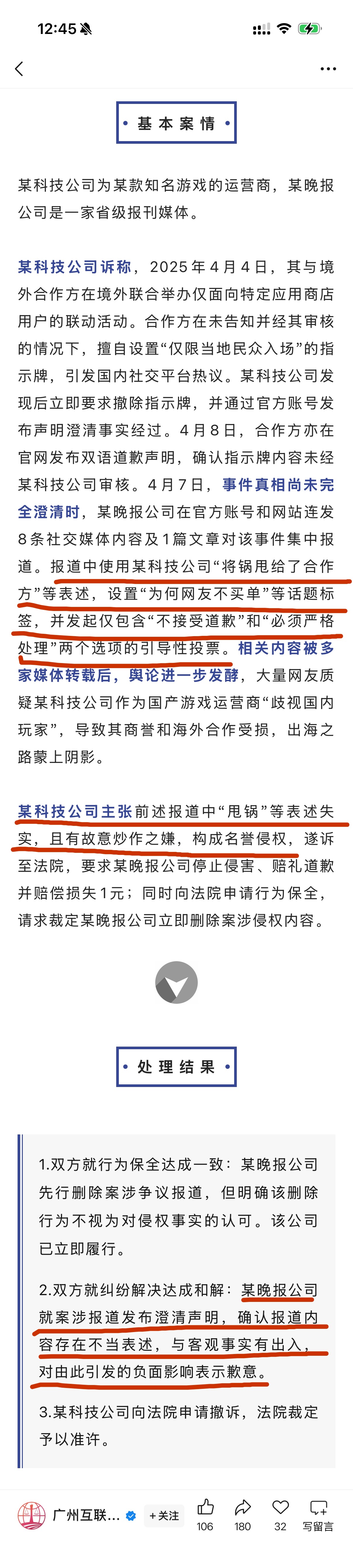 原神内鬼吧 朝史夕闻:新鸣共振扬子晚报事件「没赢接着告/告A赢B」惨遭打脸tid:103087222432025/12/17 13:07:34101275 1 10 0楼主:Yunshouw最后回复:yyqc55 永恒的ccb2025/12/20 11:34:441楼pid:1529884911342025/12/17 13:07:34Yunshouw 楼主 3级 时至今日,kl诉扬子晚报一案早已尘埃落定,前几日法院官号也发文简述了该案件的经过、内容和结果但是既然本栏目是朝史夕闻,那回顾自然是本贴主题在今年4月的韩国联动立牌事件中,扬子晚报在未清楚事实的情况下恶意引导是kl“甩锅给联动方”,并且多次在wb等平台引导话题,吃了kl的诉状到了7月中旬,有人翻出了kl和扬子晚报的开庭记录,mxz便发明了诸如①告那么多次是因为没告赢②告A赢B等等话术,来论证杨子赢kl输(虽然没人知道为什么他们会对和他们几乎没关系的扬子晚报那么孝)与此同时,新鸣特工的三个抚琴之一的mxz都出动了,他们怎能无动于衷?于是他们紧随其后,1:1严肃学习mxz的话术进行共振🫡然而,就在两三天之后,扬子晚报官方发表了致歉声明,承认先前的表述不当、与事实不符。即便如此,一些新鸣特工依然沿用上文中的话术,为自己被打脸来开脱,并论证自己的脸皮厚不过说句新道话,到目前为止我还没见到有新鸣学习mxz“kl告赢是因为给杨子晚报/法院告烦了”这种话术的,看来他们还是比mxz智商略高一些的2楼pid:1529885187792025/12/17 13:15:40Yunshouw 楼主 3级 后排发一个半年前我的帖子扩展阅读:带大家品鉴一部分姜记者的过往报道 3楼1条pid:1529885464102025/12/17 13:24:16芙芙睡大爸上我不是长离厨小吧11级 新鸣是这样的路过0此地无银 尤里の复仇10级 4楼pid:1529896161192025/12/17 18:31:41Yunshouw 楼主 3级 +35楼pid:1529935335742025/12/18 18:15:20路过0此地无银尤里の复仇10级 支持史官6楼pid:1529935999492025/12/18 18:35:50黄黄歌g黄黄歌-2级 不赖 这就是我们真正的玩家7楼pid:1529963317912025/12/19 12:26:28星路(句❤️芦❤️岚7级 真正的玩家👍🏻8楼pid:1529965263772025/12/19 13:26:58oodp9级 真正的玩家9楼pid:1529974183702025/12/19 17:50:58TheGhostWin9级 新鸣当初联动的时候还做了坎特雷拉的鬼图,新鸣本身就是公公吧的10楼pid:1530000195352025/12/20 11:34:44yyqc55永恒的ccb8级 西米椰果严肃观看