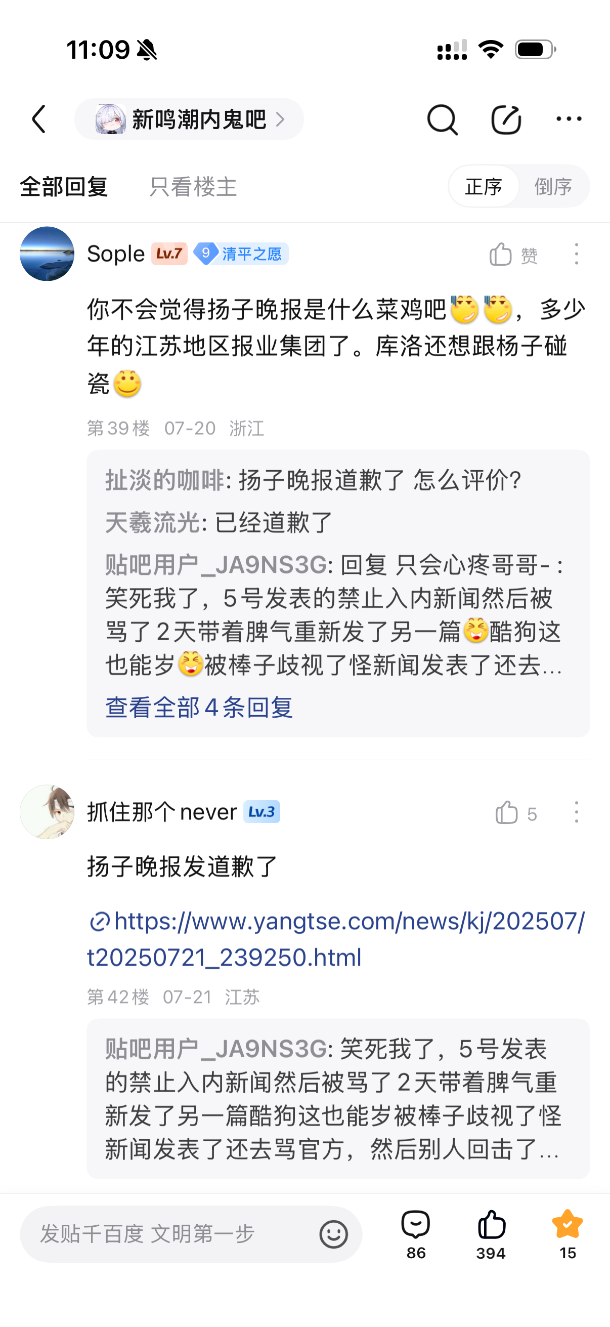 起始页原神内鬼吧 朝史夕闻:新鸣共振扬子晚报事件「没赢接着告/告A赢B」惨遭打脸tid:103087222432025/12/17 13:07:34101275 1 10 0楼主:Yunshouw最后回复:yyqc55 永恒的ccb2025/12/20 11:34:441楼pid:1529884911342025/12/17 13:07:34Yunshouw 楼主 3级 时至今日,kl诉扬子晚报一案早已尘埃落定,前几日法院官号也发文简述了该案件的经过、内容和结果但是既然本栏目是朝史夕闻,那回顾自然是本贴主题在今年4月的韩国联动立牌事件中,扬子晚报在未清楚事实的情况下恶意引导是kl“甩锅给联动方”,并且多次在wb等平台引导话题,吃了kl的诉状到了7月中旬,有人翻出了kl和扬子晚报的开庭记录,mxz便发明了诸如①告那么多次是因为没告赢②告A赢B等等话术,来论证杨子赢kl输(虽然没人知道为什么他们会对和他们几乎没关系的扬子晚报那么孝)与此同时,新鸣特工的三个抚琴之一的mxz都出动了,他们怎能无动于衷?于是他们紧随其后,1:1严肃学习mxz的话术进行共振🫡然而,就在两三天之后,扬子晚报官方发表了致歉声明,承认先前的表述不当、与事实不符。即便如此,一些新鸣特工依然沿用上文中的话术,为自己被打脸来开脱,并论证自己的脸皮厚不过说句新道话,到目前为止我还没见到有新鸣学习mxz“kl告赢是因为给杨子晚报/法院告烦了”这种话术的,看来他们还是比mxz智商略高一些的2楼pid:1529885187792025/12/17 13:15:40Yunshouw 楼主 3级 后排发一个半年前我的帖子扩展阅读:带大家品鉴一部分姜记者的过往报道 3楼1条pid:1529885464102025/12/17 13:24:16芙芙睡大爸上我不是长离厨小吧11级 新鸣是这样的路过0此地无银 尤里の复仇10级 4楼pid:1529896161192025/12/17 18:31:41Yunshouw 楼主 3级 +35楼pid:1529935335742025/12/18 18:15:20路过0此地无银尤里の复仇10级 支持史官6楼pid:1529935999492025/12/18 18:35:50黄黄歌g黄黄歌-2级 不赖 这就是我们真正的玩家7楼pid:1529963317912025/12/19 12:26:28星路(句❤️芦❤️岚7级 真正的玩家👍🏻8楼pid:1529965263772025/12/19 13:26:58oodp9级 真正的玩家9楼pid:1529974183702025/12/19 17:50:58TheGhostWin9级 新鸣当初联动的时候还做了坎特雷拉的鬼图,新鸣本身就是公公吧的10楼pid:1530000195352025/12/20 11:34:44yyqc55永恒的ccb8级 西米椰果严肃观看