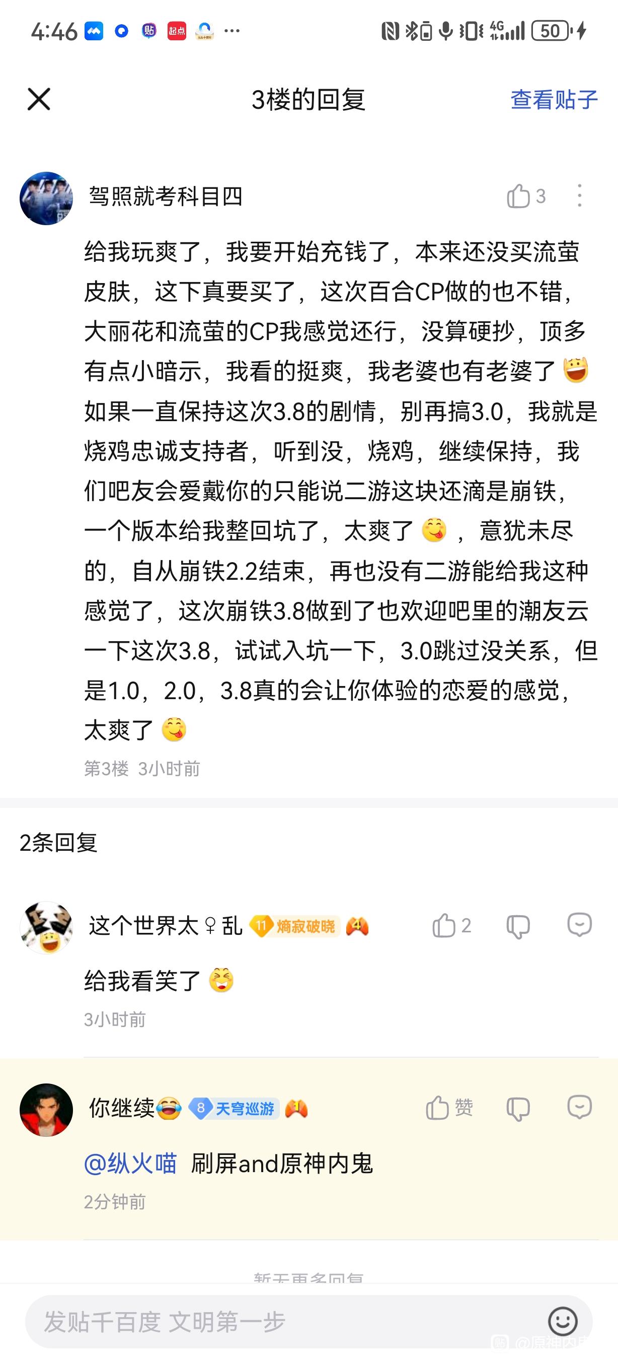 原神内鬼吧 为什么隔壁崩鬼这么恨这里tid:103093278172025/12/17 17:03:101236 0 0楼主:驾照就考科目四最后回复:贴吧用户_5ANtbCC2025/12/19 14:12:371楼pid:1529893073492025/12/17 17:03:10驾照就考科目四 楼主 8级 我刚刚看了一眼,正常情况虽然双标了一点,不能惹到我们女角色÷,而且随便骂男角色没啥问题,虽然因为一段没攻击力的复制黏贴破防了但是也只封一天,我主页有圆规给我十天这是何意味啊,圆规和崩鬼不是兄弟姐妹吗,怎么和仇人一样,我以为我是崩内爆,原内爆,北洛野的人呢2楼pid:1529966737602025/12/19 14:12:37驾照就考科目四 楼主 8级