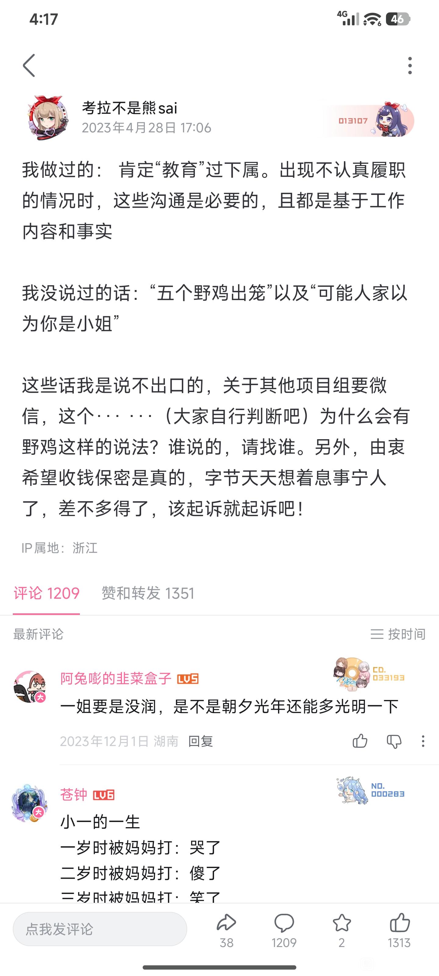 - 张依(前asoul经纪人)23年出来说过【我做过的: 肯定“教育”过下属。出现不认真履职的情况时,这些沟通是必要的,且都是基于工作内容和事实】,也许对3姐来说这就是职场霸凌和压榨吧...