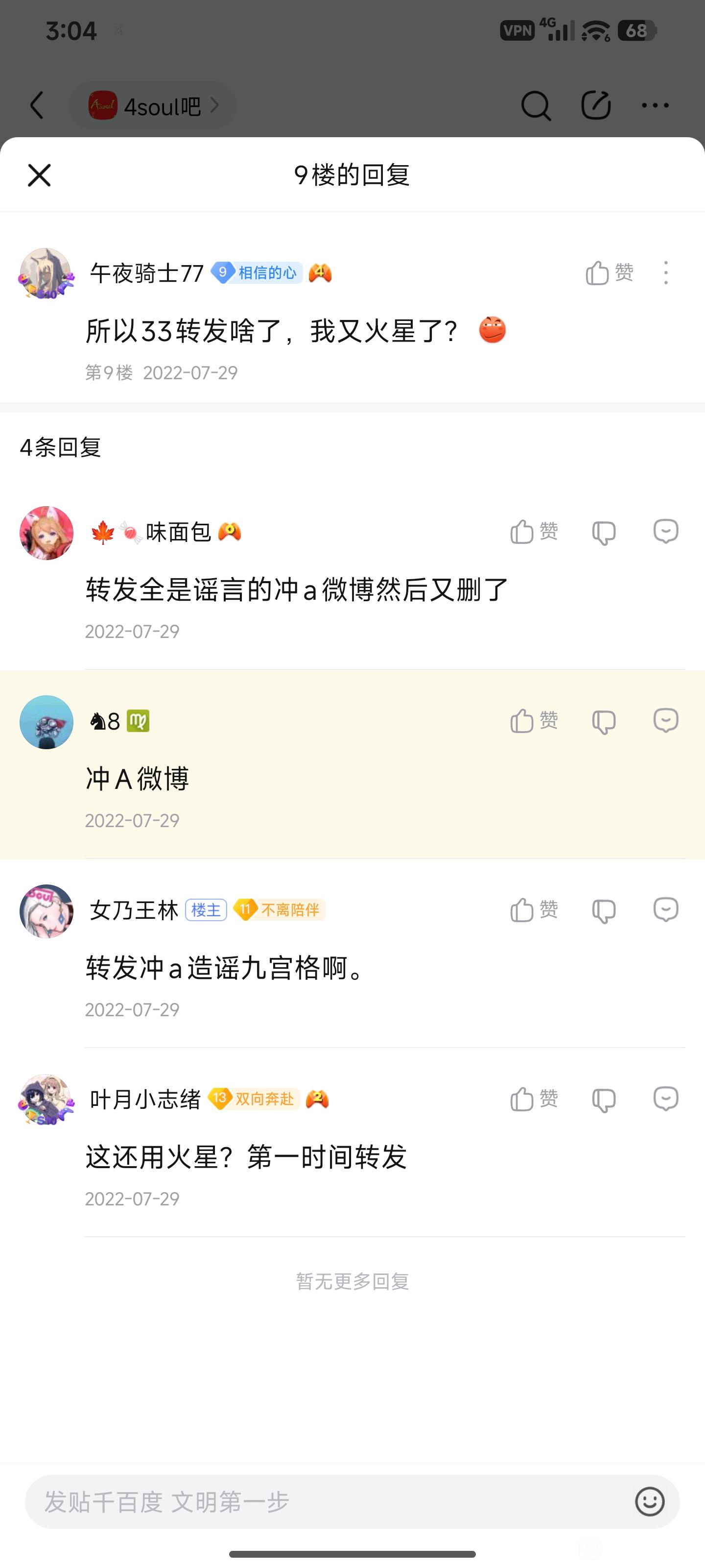 Ss影灬无痕 瓦伦蒂娜从楼上510时期的老帖子还有和某吧友和五语气的聊天记录,可以看到哪怕是当初支持3姐的人,都认为3姐转发冲a微博是很恶劣的行为,所以主动给3姐擦屁股,表示转发是假的- 3姐自己转发完,然后又秒删了,可能她自己也知道这种行为不妥。当然,也有可能是3姐后来解释的手滑不小心转发了,不过可能性我认为不大