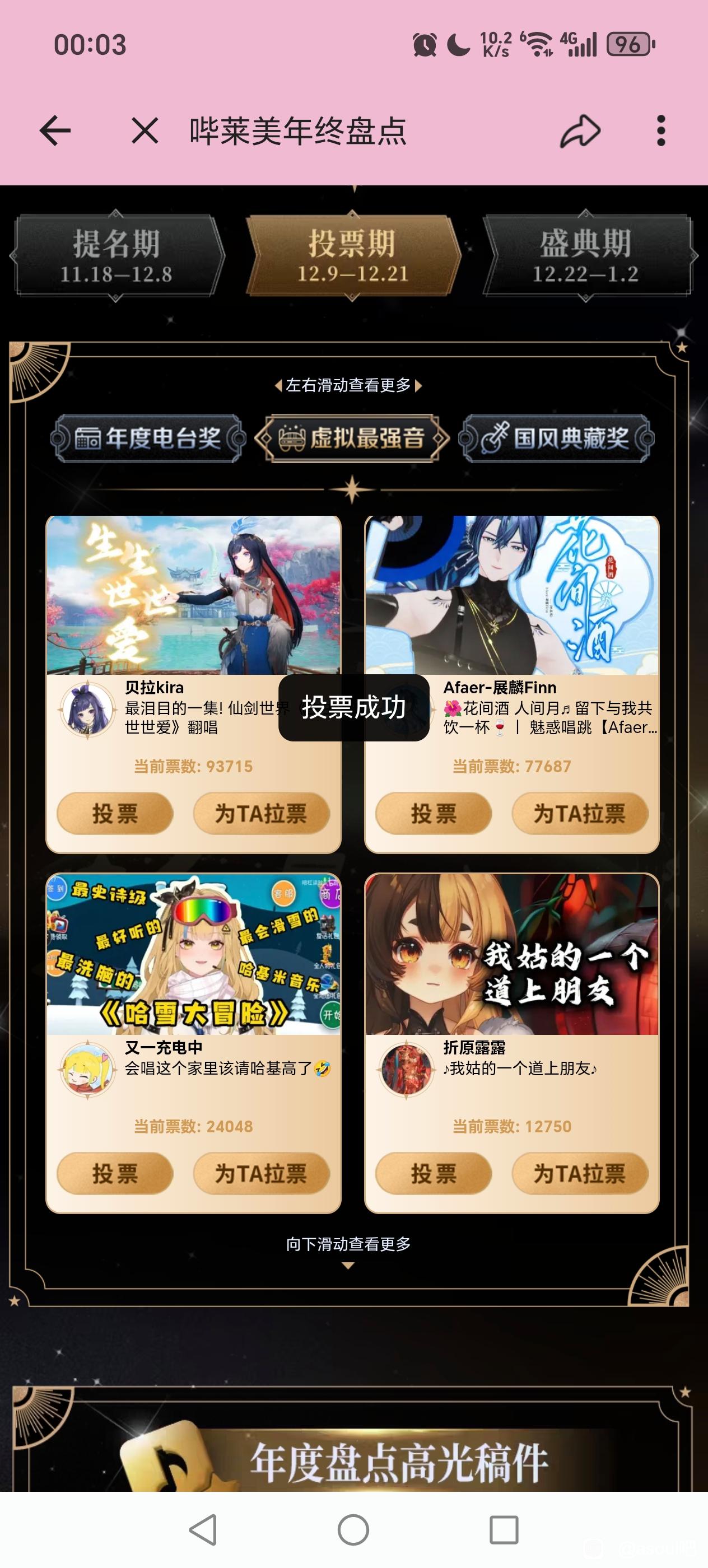4楼2条pid:1529988673652025/12/20 00:52:38Icarus0824贴吧用户_5RAVDbJ10级 哦对了,每个人每天都有两票!记得B站搜索哔莱美-虚拟最强音给拉姐投票,点击投票旁边的“为ta助力”按钮,就可以获得额外一票啦,谢谢各位kuau简七jseven 简七七 楼主 6级 三个号每天投6票Icarus0824 贴吧用户_5RAVDbJ 层主 10级 回复 简七七 :那我真得夸你了