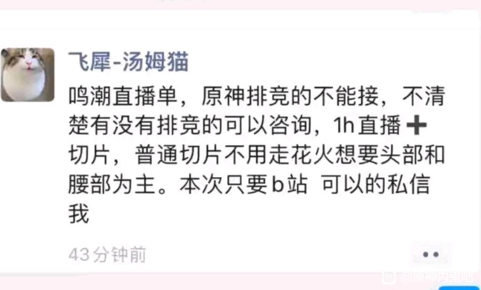 鸣潮直播单,(属于)原神排竞,所以不能接鸣潮。