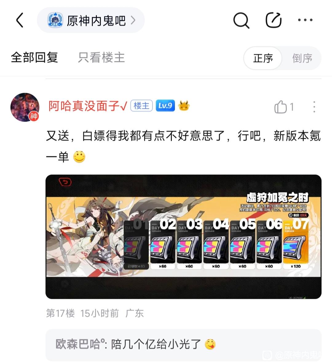 那个贴主拿出两个游戏的福利差别来拉踩,我给你的回复都已经是开卷考来应对他的论点了。结果呢?你还能像个dinner一样的在这和我扯那没用的。真就是烂泥扶不上墙,纯纯five一条啊你。