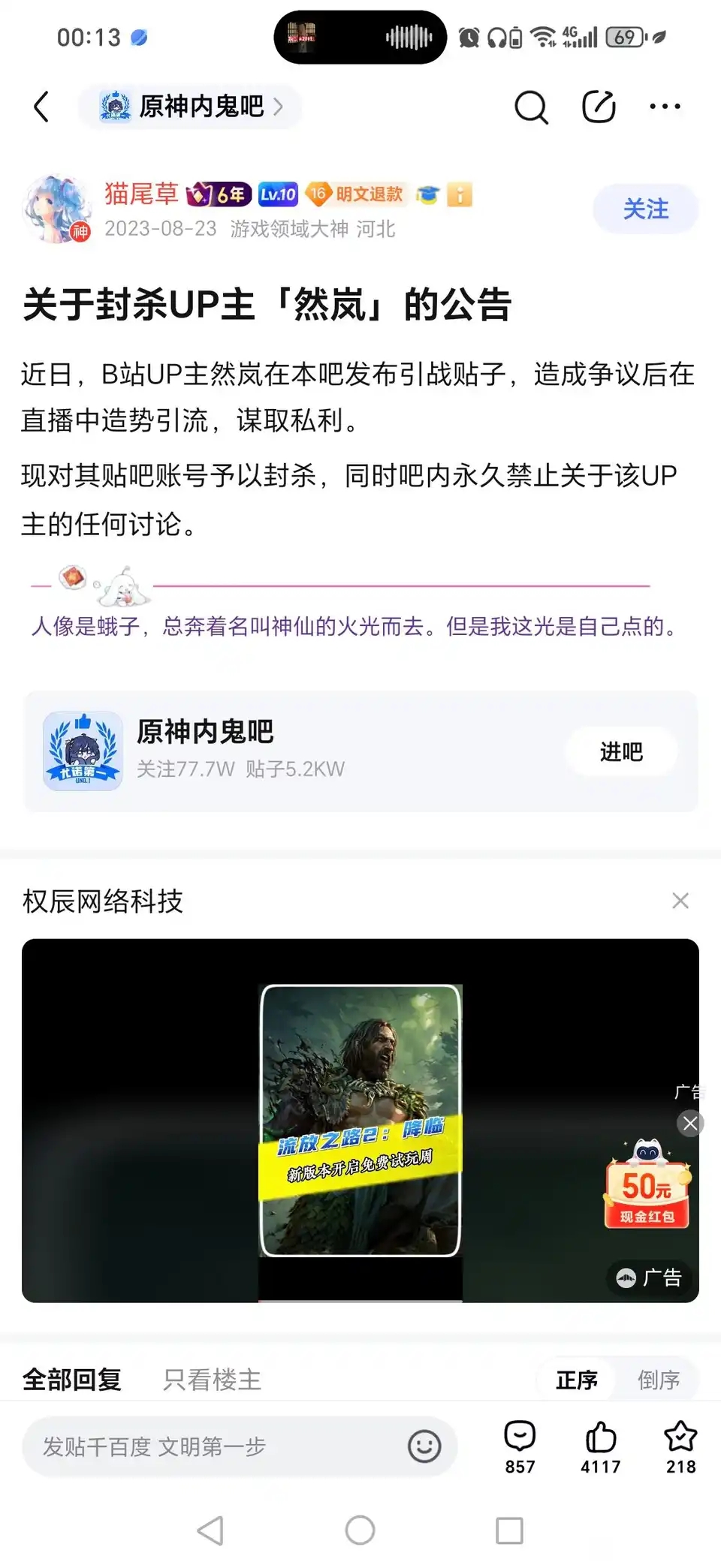 wuweiwei233333 何事秋风悲画扇🌱你要考虑到整个鸣潮社区本身就诞生于米游社区的疯狂攻击之下,在米哈游将饭圈打榜➕黑流量➕社区管控这套完完整整地运营在游戏社区之后,这个社区肯定会变成这样。- 你说让鸣潮去暗区化,暗区沉淀下去。那我倒想问问你了,怎么沉淀下去,对面暗区会放过鸣潮社区?说句不好听的,除非米哈游彻底死了,不然这都是不可能的。