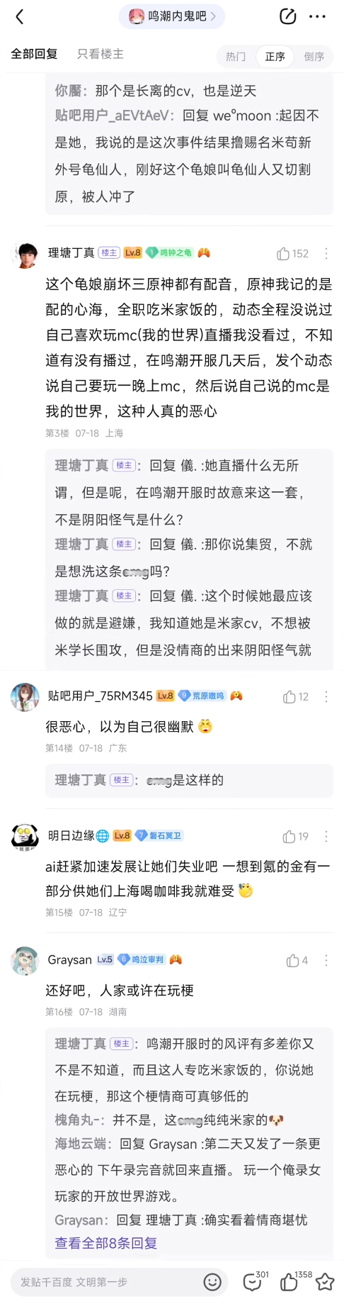 我觉得是e,🐢这件事很久了,并且确实有人带她节奏。那她好歹忍了一段时间。这个e莫名其妙看到没几个人回复的帖子也能急眼,我也是觉得搞笑。这点度量都没有吗?