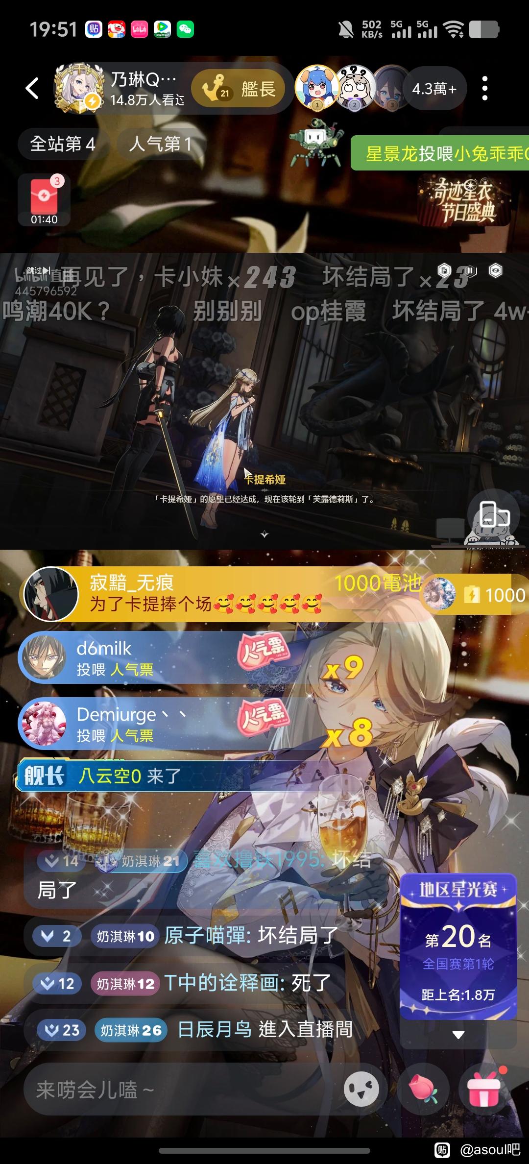 到八点就不行了,鸣潮一姐我心中的蒙娜丽莎要coser坎特蕾拉开播了。