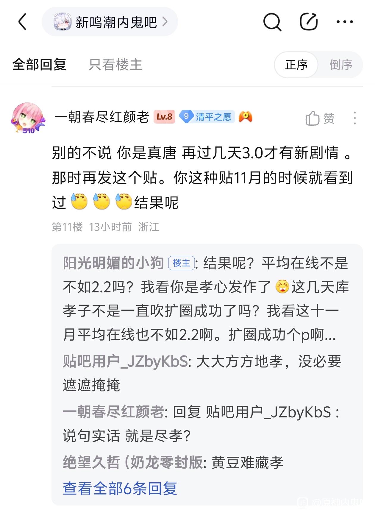 原神内鬼吧 作为一个新鸣也中,当你发帖有人反驳你是,你的做法:tid:103229078392025/12/21 23:21:525769 4 0楼主:长离无需多言 呃啊啊啊,什么名字好最后回复:xxxxd传奇 原神宇内第一2025/12/23 23:05:061楼pid:1530060278952025/12/21 23:21:52长离无需多言呃啊啊啊,什么名字好 楼主 7级 选择你要扣的帽子2楼pid:1530092748362025/12/22 20:13:17孙笑川12309不羨仙100329级 孝3楼pid:1530097827372025/12/22 22:41:04你好敢达芪师傅的忧郁💤8级 什么是孝什么是不孝,标准是什么,可能新鸣那边自己都搞不清楚。4楼pid:1530102030452025/12/23 00:50:43我说木有9级 结论不是早就有了吗,不跟他们一起共振的全是孝子5楼pid:1530103214482025/12/23 01:43:42nrthqyh一口气全砸中8级 辣仙打法你就学吧,不跟他们的唐人言论共振的全是孝子!6楼pid:1530137259152025/12/23 23:05:07xxxxd传奇原神宇内第一7级 这群貂毛迟早要被比他味更大的熏走