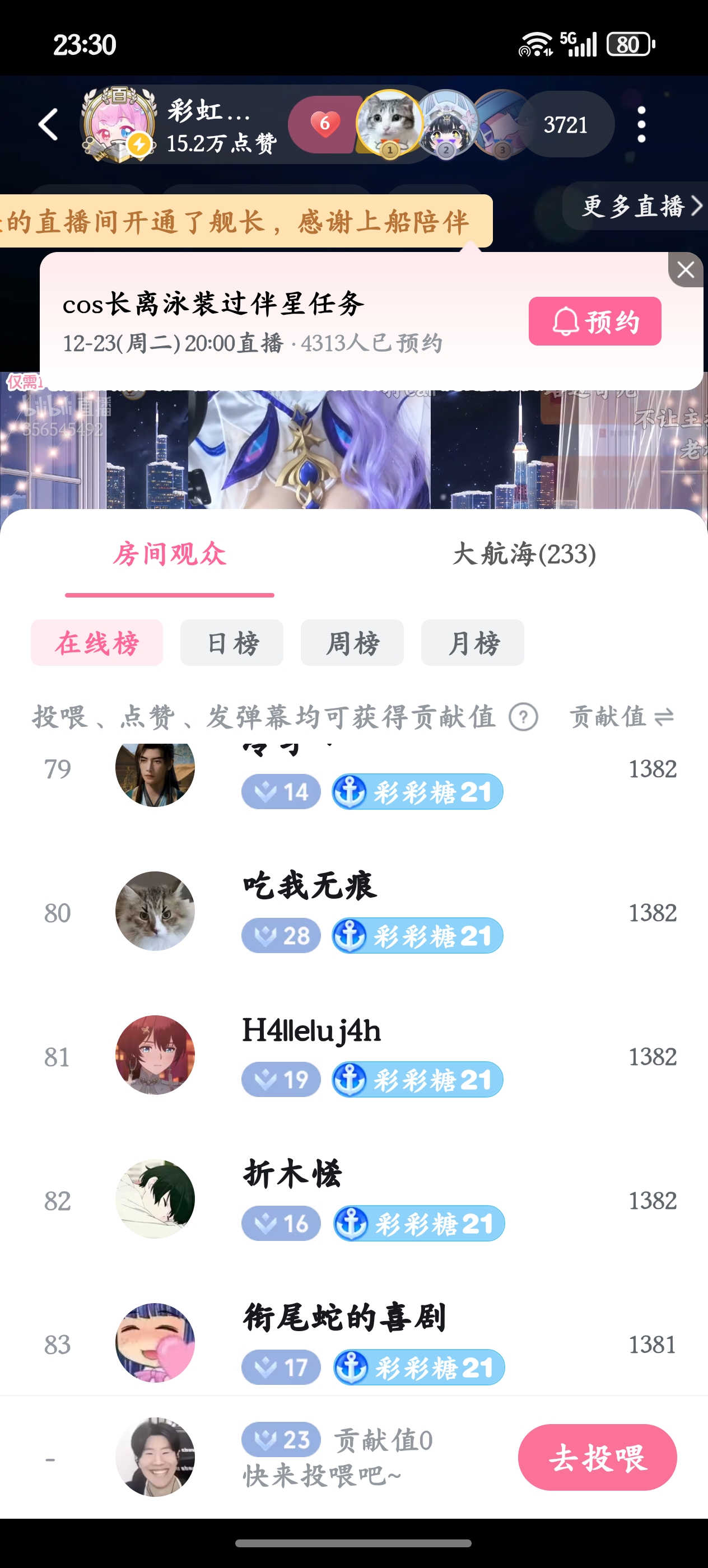 已经240了,开播一个伴星直接涨100舰长还有一个提督