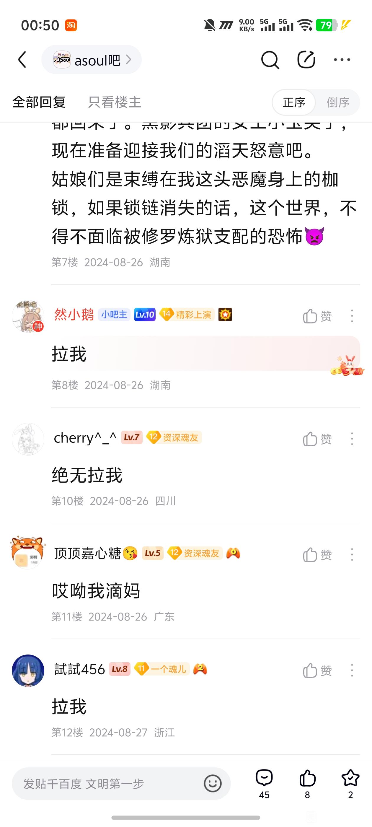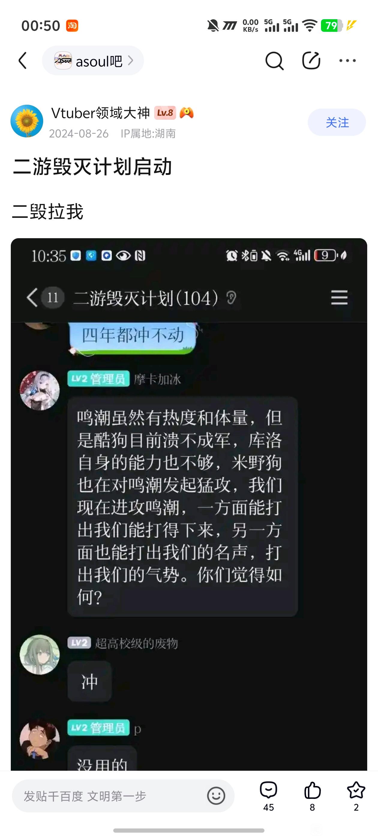 起始页asoul吧 这是什么意思?tid:103230876302025/12/22 00:51:10151868 4 0楼主:啦啦哒哒nn 爱抓人的丰川祥子同学最后回复:嘉然向晚suki贝拉毒唯😢2025/12/22 10:08:391楼pid:1530063188162025/12/22 00:51:10啦啦哒哒nn爱抓人的丰川祥子同学 楼主 6级 为什么要毁灭鸣潮2楼pid:1530063222522025/12/22 00:52:32ffb795失去的永远不会再回来6级 活动还在吗3楼pid:1530063309322025/12/22 00:56:12纯真丁一郎1234喜羊羊...1级 @然小鹅4楼pid:1530063401842025/12/22 01:00:13嗳泪不不殇丿心晚很大我忍下😻8级 二毁拉我5楼pid:1530063425162025/12/22 01:01:08Cjkniubi给我一份饼干º2级 还有💩书6楼pid:1530063559312025/12/22 01:06:35LDJLDJ8998洁塔薇5级 拉我7楼pid:1530063865322025/12/22 01:19:43浅海深行鱼愚遇渔💦10级 米库交手的余波就把a87团灭了,我记得那段时间两边的黑屁视频都是百万起步,评论区就没下过一万评论。8楼pid:1530065803002025/12/22 03:26:02独来独往的自由冬月浪涌起6级 青蒜猎巫!9楼pid:1530065881502025/12/22 03:33:28暗闪电法国红酒天野婕可の「反対言葉13级 a87当时拳打木柜子脚踩麻辣仙人飘了串出来的10楼pid:1530067335592025/12/22 06:29:39苦哀酒_苦艾酒℡13级 检测到错误记忆11楼pid:1530067795892025/12/22 07:08:10寄死我了木木太坏了2级 开猎12楼pid:1530068817772025/12/22 08:04:04啥都行是吧6级 @然小鹅 二毁拉我13楼pid:1530069691502025/12/22 08:37:46丶雷欧娜6级 检测到错误记忆14楼pid:1530070341992025/12/22 08:59:47嘉然向晚suki然小鹅小吧14级 这啥事我都忘了,我喊了一年的小团体拉我,没一个拉我,害得我只能去玩鸣潮了15楼pid:1530072446662025/12/22 10:06:14lovexbxjxbxj1级 哎我草A87原来这么坏16楼pid:1530072526322025/12/22 10:08:39炫押韵基米2级 毁灭吧,将世界上的二游痴驱逐殆尽,一匹不留