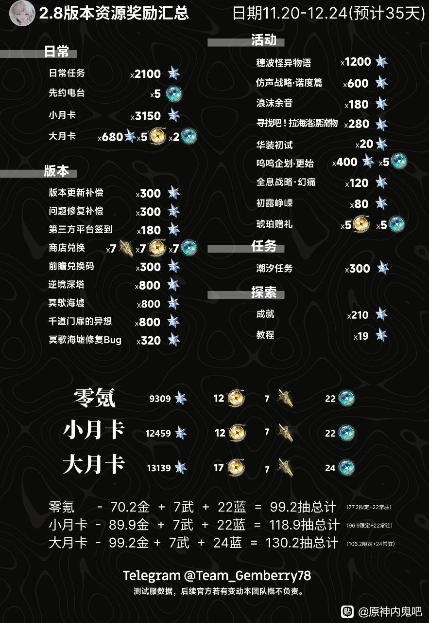 tg78,当时2.8并未清楚缩多少天,所以没有计算最后那期海墟,TGA奖励也是开版本之后十几天才知道的