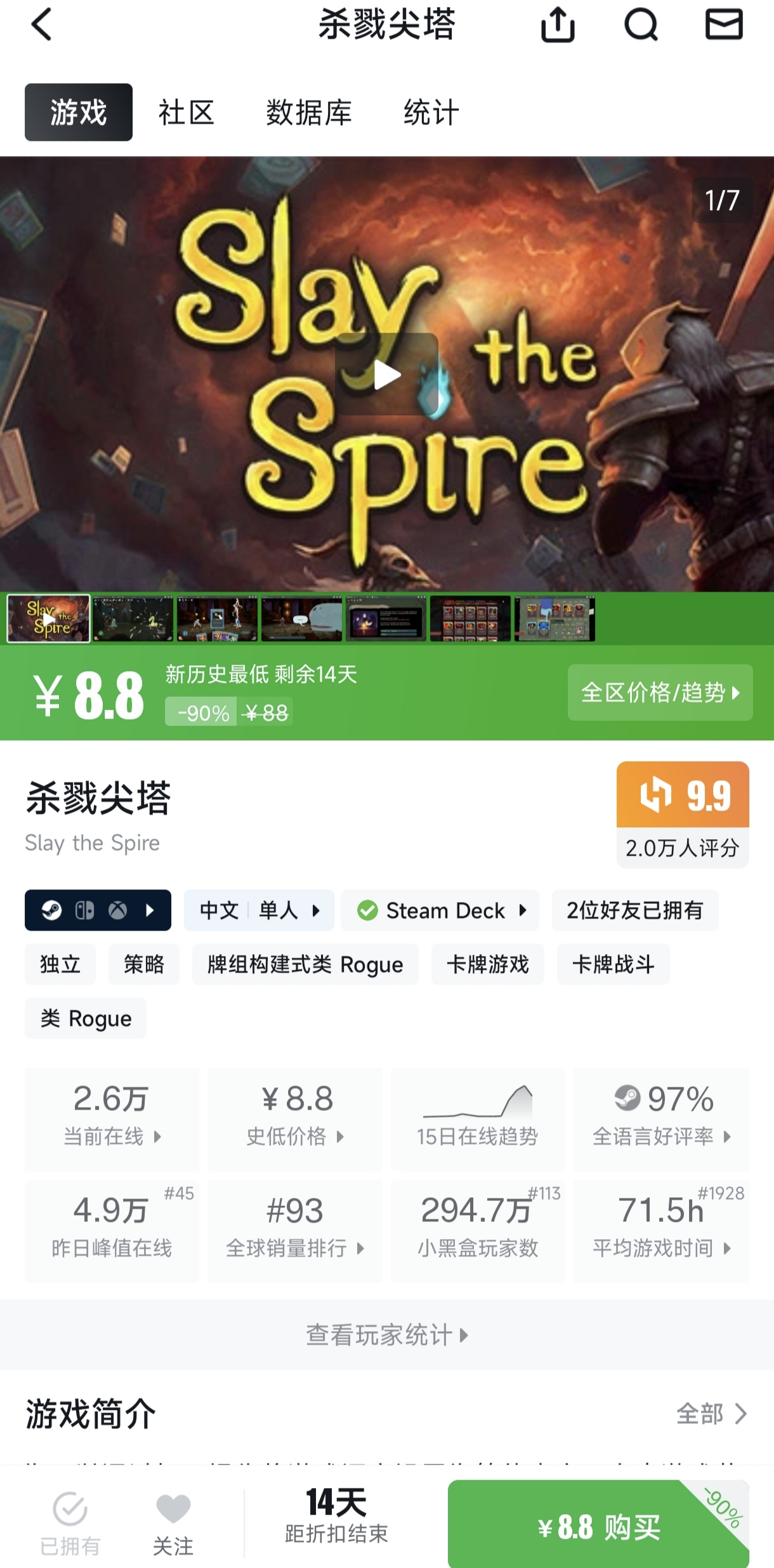 asoul吧 蓝蓝没想到22都能被背刺tid:103242558792025/12/22 11:18:3115479 3 0楼主:nanimi2 单推塔菲喵最后回复:nanimi22025/12/22 15:40:541楼pid:1530075002122025/12/22 11:18:31nanimi2单推塔菲喵 楼主 9级 是的,这是一款即使蓝蓝又双叒叕被背刺也不会产生负面情绪的游戏,slaythespire,蓝蓝只有一句话评价它,那就是卡牌肉鸽的巅峰之作,卡牌的顶点,肉鸽的顶峰。开了创意工坊的它更是无游能及,不管你是什么玩家,只要玩了杀戮尖塔,就能直观的感受到以前玩的都是什么勾巴。现在,一杯蜜雪冰城的钱就可以爽玩几百上千小时,还没买的a87速速加购2楼1条pid:1530075408742025/12/22 11:29:39向晚可爱捏向晚可爱捏~12级 确实好玩,乃琳要是能播就好了nanimi2 单推塔菲喵 楼主 9级 发邮箱建议一下3楼pid:1530075485322025/12/22 11:31:49北北北北北北e左右左右e11级 下午评鉴一下。4楼pid:1530075665462025/12/22 11:37:00nanimi2单推塔菲喵 楼主 9级 一款真正做到零差评的游戏,即使你点开差评,看到的也是高级夸这种评论5楼1条pid:1530076260432025/12/22 11:54:40依然de不羁枝江鲸鱼侠12级 快出2了吧nanimi2 单推塔菲喵 楼主 9级 早呢6楼pid:1530077643852025/12/22 12:37:38呵呵一0一12级 买个试试7楼pid:1530077991172025/12/22 12:47:44里欧2010Rio😘小选8级 那就占个位来吧8楼1条pid:1530078084342025/12/22 12:50:31繁星闪烁于此繁星闪烁于此🌟语音小编15级 肉鸽只玩过以撒,这个好上手吗一大坨喷香答辩 然唯🎀13级 好玩,只要忍住不拿垃圾卡就行。 玩多了走什么路会遇到什么大概心里会有数9楼3条pid:1530078187782025/12/22 12:53:37一大坨喷香答辩然唯🎀13级 真是提醒我了 ,一直没补票nanimi2 单推塔菲喵 楼主 9级 盗版狗一大坨喷香答辩 然唯🎀 层主 13级 回复 单推塔菲喵 :一直玩手机上的nanimi2 单推塔菲喵 楼主 9级 回复 然唯🎀 :正版的有创意工坊,一个mod=一个新游戏10楼pid:1530083533772025/12/22 15:36:09XFOREVER23小吧14级 噗嗤