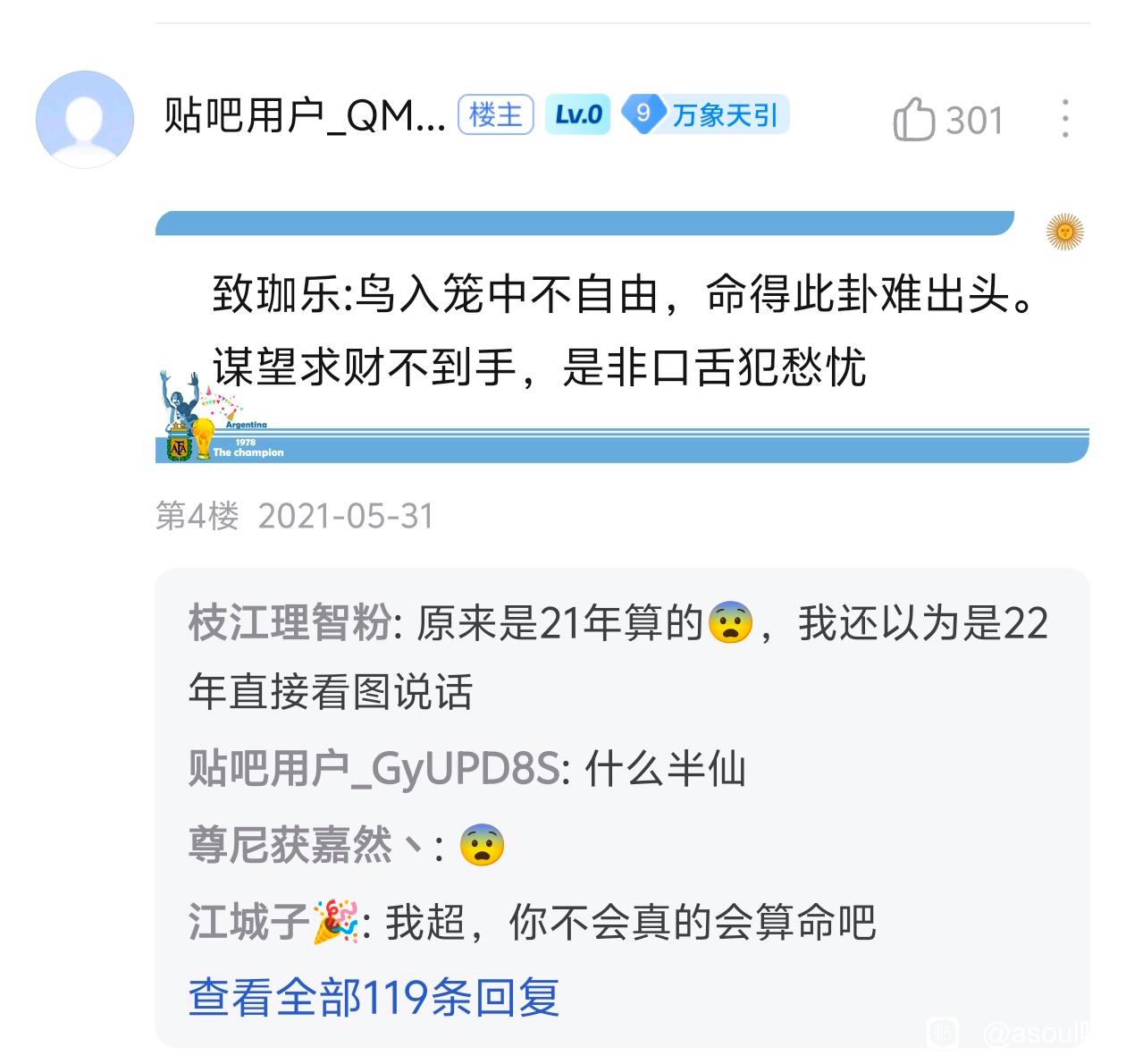 asoul吧 转载 21年大师的五卦tid:103244667042025/12/22 12:40:54171460 8 0楼主:snakestaff 查布多德雷最后回复:向晚可爱捏贴吧用户_GWXVMR72025/12/22 15:06:231楼pid:1530077753812025/12/22 12:40:54snakestaff查布多德雷 楼主 9级 原帖的收藏都变成负数了🙏2楼pid:1530077779012025/12/22 12:41:38snakestaff查布多德雷 楼主 9级 第二卦3楼pid:1530077826652025/12/22 12:43:00snakestaff查布多德雷 楼主 9级 第三卦 结合最近鸣潮的事,我不好说了🙏4楼pid:1530077851602025/12/22 12:43:39轻若浮尘plus1级 还在大仙5楼pid:1530077882912025/12/22 12:44:30snakestaff查布多德雷 楼主 9级 第四卦 这个可能还没应验,估计是几年后的事了6楼1条pid:1530077941822025/12/22 12:46:17snakestaff查布多德雷 楼主 9级 第五卦 这个大家应该知道是谁学霸老亚瑟 拉胯抛瓦11级 唉偶像梦7楼1条pid:1530078018742025/12/22 12:48:30snakestaff查布多德雷 楼主 9级 唉 大师道破天机,已然离去🙏贴吧用户_JZQSJJt1级 大师还活着呢没死成8楼pid:1530078108932025/12/22 12:51:19但求天气好好有点太极端惹14级 我真服了9楼pid:1530078139722025/12/22 12:52:14幽魂君123草莓breaker11级 高僧预测:我今晚要吃面条10楼pid:1530078308662025/12/22 12:57:1712345qwertyz粉色矮子可爱捏12级 大师你可以猜猜是现在吧里哪个熟人11楼pid:1530078683562025/12/22 13:08:19bot二号机1级 高僧预测:明天太阳会升起12楼pid:1530079268632025/12/22 13:27:17云流水泽草地对天空的曲面积分11级 大师是瞳瞳吗13楼pid:1530079329652025/12/22 13:29:15为彦而歌world嶷㩸3级 14楼1条pid:1530080969502025/12/22 14:20:04向晚可爱捏向晚可爱捏~12级 日经贴能别炒了吗snakestaff 查布多德雷 楼主 9级 呵呵老东西还不滚15楼pid:1530082550742025/12/22 15:06:23mika的小雪糕小弗转职当大厨6级 我去,还真有高人啊