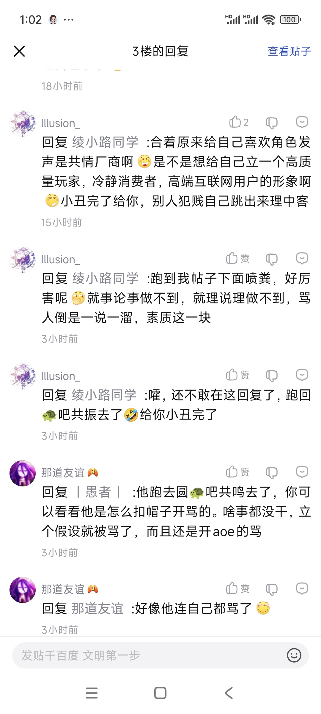 起始页原神内鬼吧 所以为什么米友在各个游戏都人人喊打tid:103263546162025/12/23 01:34:134220 1 0楼主:王小美单推人 绫小路同学最后回复:18885211526yl六月中旬😁♂2025/12/23 13:32:231楼pid:1530103034282025/12/23 01:34:13王小美单推人绫小路同学 楼主 8级 玩游戏就玩游戏,非要共情厂商。钱是不氪的,孝心就是在论坛扣字。 所以为什么在别地方都不敢说自己要原神的2楼pid:1530103057472025/12/23 01:35:24王小美单推人绫小路同学 楼主 8级 米xz最喜欢一击脱离拉黑,然后回复精神胜利,以后也别叫⭕p,直接叫米老鼠合理,毕竟下水道老鼠没法见光3楼pid:1530103075952025/12/23 01:36:17王小美单推人绫小路同学 楼主 8级 太吓人了一群死肥宅二游痴4楼pid:1530117345082025/12/23 13:05:02王小美单推人绫小路同学 楼主 8级 什么米老鼠,拉黑然后狠狠回复,假装别人不敢说话,哈人5楼pid:1530118197932025/12/23 13:32:2318885211526ylCHALL3ENGE13级 尬黑,mxz精神共情也是满满的孝义