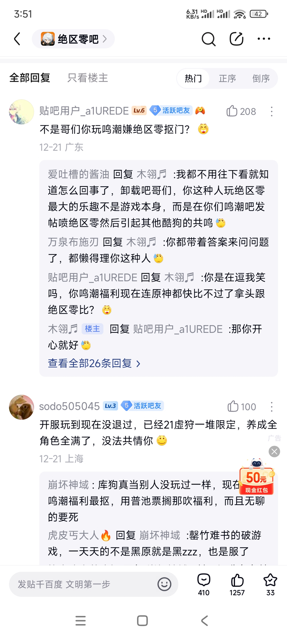 原神内鬼吧 看到我们绝宝送的多了,酷狗都来眼红造谣了?tid:103288075392025/12/23 19:49:10596 0 0楼主:想吃小鱼干a 四斋蒸鹅心🐭最后回复:我ID太好听了贴吧用户_7ZNGMUQ2025/12/23 20:21:021楼pid:1530130430942025/12/23 19:49:10想吃小鱼干a四斋蒸鹅心🐭 楼主 10级 懒得喷,没见过这么多福利是这样的,绝宝一出手就是谁的一辈子2楼4条pid:1530130869902025/12/23 20:02:39我ID太好听了12级 不懂就问,绝区零的卡池啥样?比鸣潮的半步米池更优惠吗?想吃小鱼干a 四斋蒸鹅心🐭 楼主 10级 这个不能一概而论福利多就是好,送得多就是好绝区零爆杀鸣潮我ID太好听了 层主 12级 回复 四斋蒸鹅心🐭 :所以绝区零是完全体米池?想吃小鱼干a 四斋蒸鹅心🐭 楼主 10级 回复 我ID太好听了 :那咋了,你鸣潮福利少送的少抽数少,那不就输了我ID太好听了 层主 12级 回复 四斋蒸鹅心🐭 :畏惧了,小绝牛批