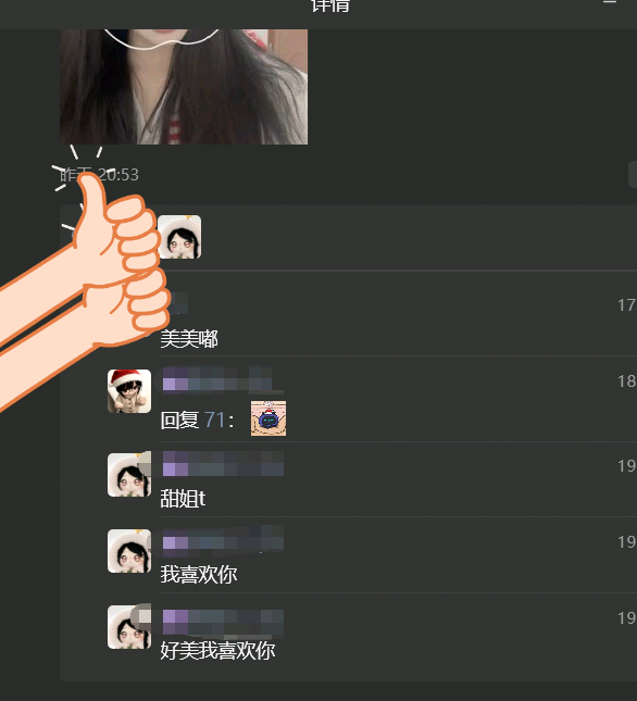 12楼pid:1530170303072025/12/24 20:18:05来杯摩卡嗷我已经搞不懂了 楼主 13级 我已经尽力了 且听我分析,换做是我认识两天的人突然在朋友圈对我照片发疯说喜欢我我立马单删,她没删我肯定是对我有好感的,而且在她朋友圈发疯已经有一个了,我再发疯 她就能能品出我的小吃醋,然后如果她不喜欢我我就可以说是学前面发疯的那个人可以用玩笑糊弄过去,我还有台阶下