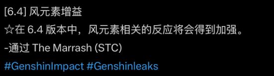 其次就是大佬还爆料了6.4版本的时候风元素相关的反应将会直接得到加强,但是目前来看呢风元素它是不存在会有月扩散反应的可能性的,因此这个加强我个人感觉无非是从两个点进行改动。