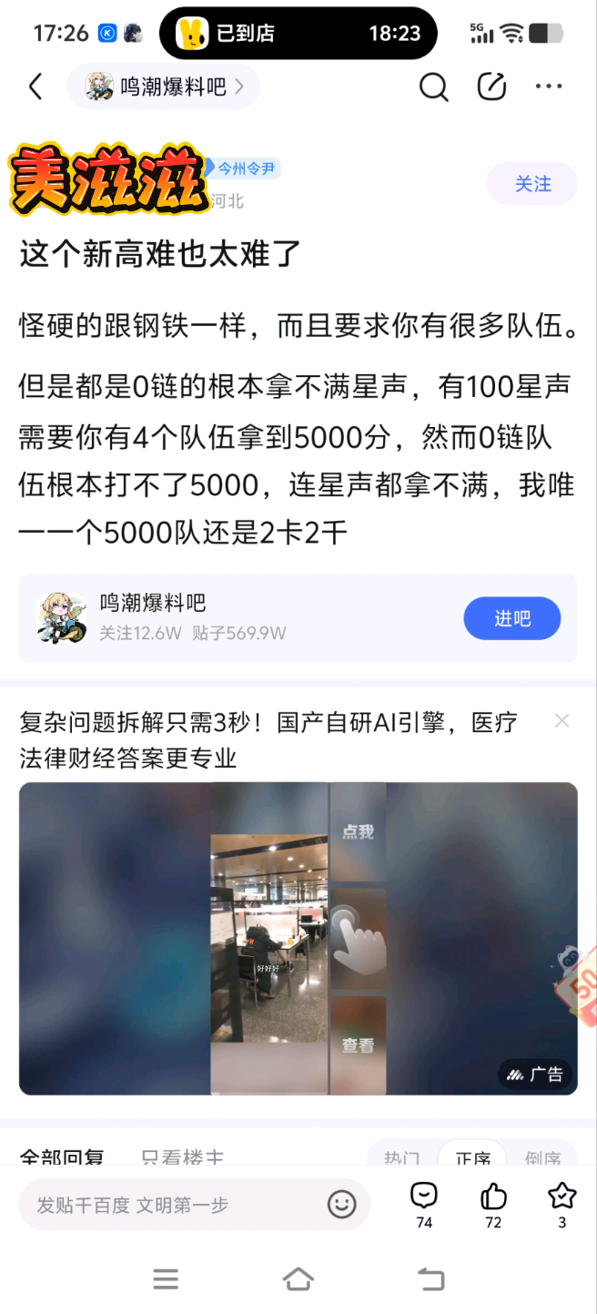 起始页原神内鬼吧 怎么没人说鸣潮新高难tid:103381647312025/12/26 16:26:4210397 0 0楼主:皮皮昀enjoy 摆烂的尘逸最后回复:隍陇头子贴吧用户_a7e4C8C2025/12/27 00:40:511楼pid:1530238747552025/12/26 16:26:42皮皮昀enjoy摆烂的尘逸 楼主 11级 怎么说好久没玩鸣潮了都,新高难什么水平,和深境幻想剧诗怎么说2楼pid:1530240187542025/12/26 17:11:04殇空冷月也无声有机会一定请你吃饭9级 路边游戏根本不玩3楼pid:1530240979552025/12/26 17:35:20节气门天枰6级 已经填工单反馈了确实难,不过没幻想真境巨石的随机性恶心,这个更像幽静危战4楼4条pid:1530241985742025/12/26 18:07:52月饼铺子10级 比巨史史月饼铺子 层主 10级 巨史难在进去2.0一共7队,它要6队5000分,出早了,这玩意应该明年周年庆出才对拿水晶也要四队5000分鸣其实就一年半5楼pid:1530246026732025/12/26 20:19:56御坂124587号七依Mikeneko14级 满链直接秒杀,没有含金量6楼pid:1530247298352025/12/26 21:00:11yyqc55永恒的ccb8级 为什么不把大头星声放前面,后面你想出多难都没事,只要不涉及抽卡,给成就甚至给头像我都没意见7楼pid:1530254642452025/12/27 00:40:51隍陇头子映照浮世8级 史