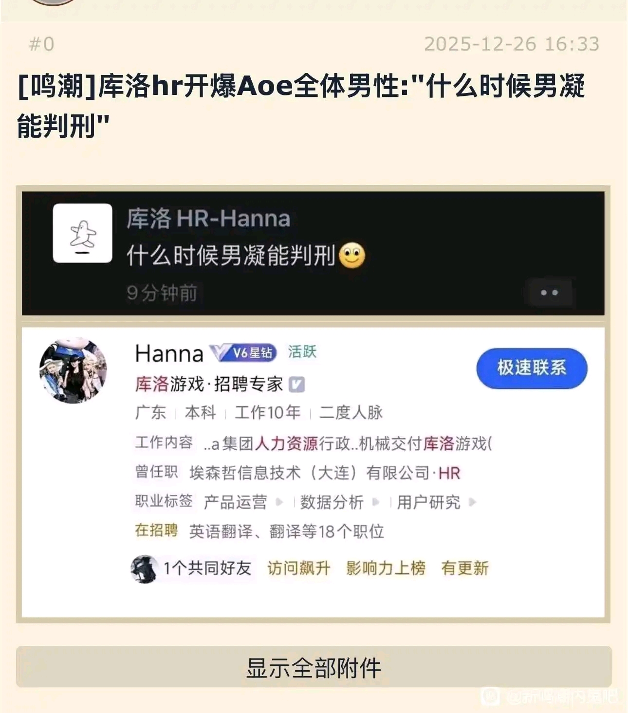 1楼pid:1530250211122025/12/26 22:26:38Cartethyia6卡提希娅老公 楼主 7级 每天费尽心思地去抹黑其他游戏,结果刺玫菇打进来就下跪。但凡你们拿出冲别家游戏一半的精力去清理自家的刺玫菇呢?二游孝子什么时候才能明白二游变烂的根源是打拳刺玫菇而不是别家游戏呢?米库天天对喷赢了对方也不会对游戏体验有任何影响,但刺玫菇在游戏内打拳迫害男玩家让侵占男玩家的生存空间是实打实的会影响玩家游戏体验的。天天跟其他游戏对喷不如先冲了自家公司和社区里那些恶心人的刺玫菇