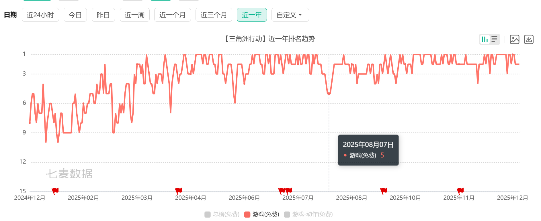 三角洲下半年低点13,已经比和平精英还高,王者之下第二名。