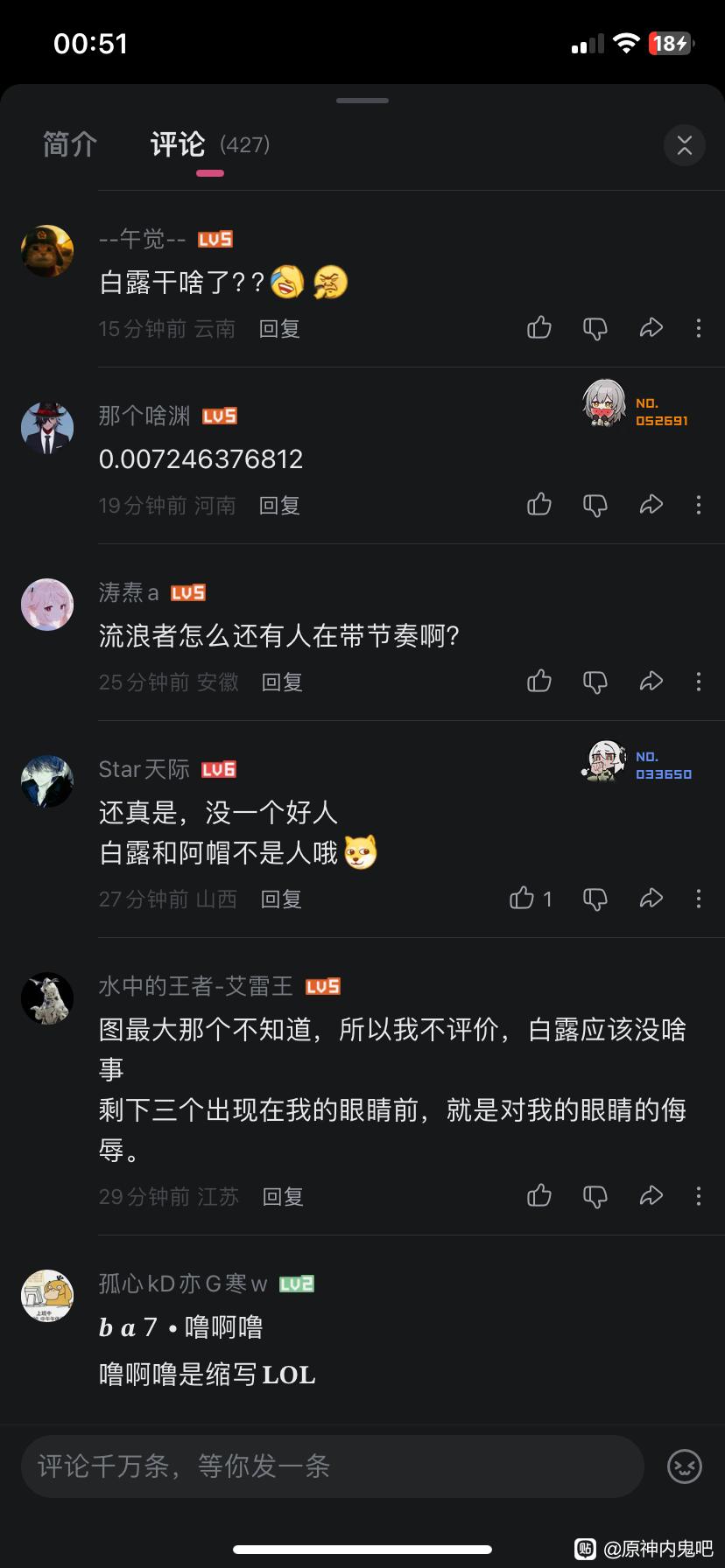 原神内鬼吧 哈哈大笑🤣tid:103424705772025/12/28 00:58:433768 2 0楼主:老八再世 那个啥渊最后回复:叶上的毛毛虫2025/12/28 21:41:361楼pid:1530291641322025/12/28 00:58:43老八再世那个啥渊 楼主 2级 0.007246376812评论区我会发B站评论2楼pid:1530291653322025/12/28 00:59:08老八再世那个啥渊 楼主 2级 3楼pid:1530293356422025/12/28 02:11:13路人甲_Sama汐汐不汐汐~9级 30T76RYZU4欢迎大家回坑鸣潮,填邀请码有星声4楼pid:1530321701372025/12/28 21:41:36叶上的毛毛虫8级 (ಡωಡ) 居然不敢把小鸣的战犯放进去?