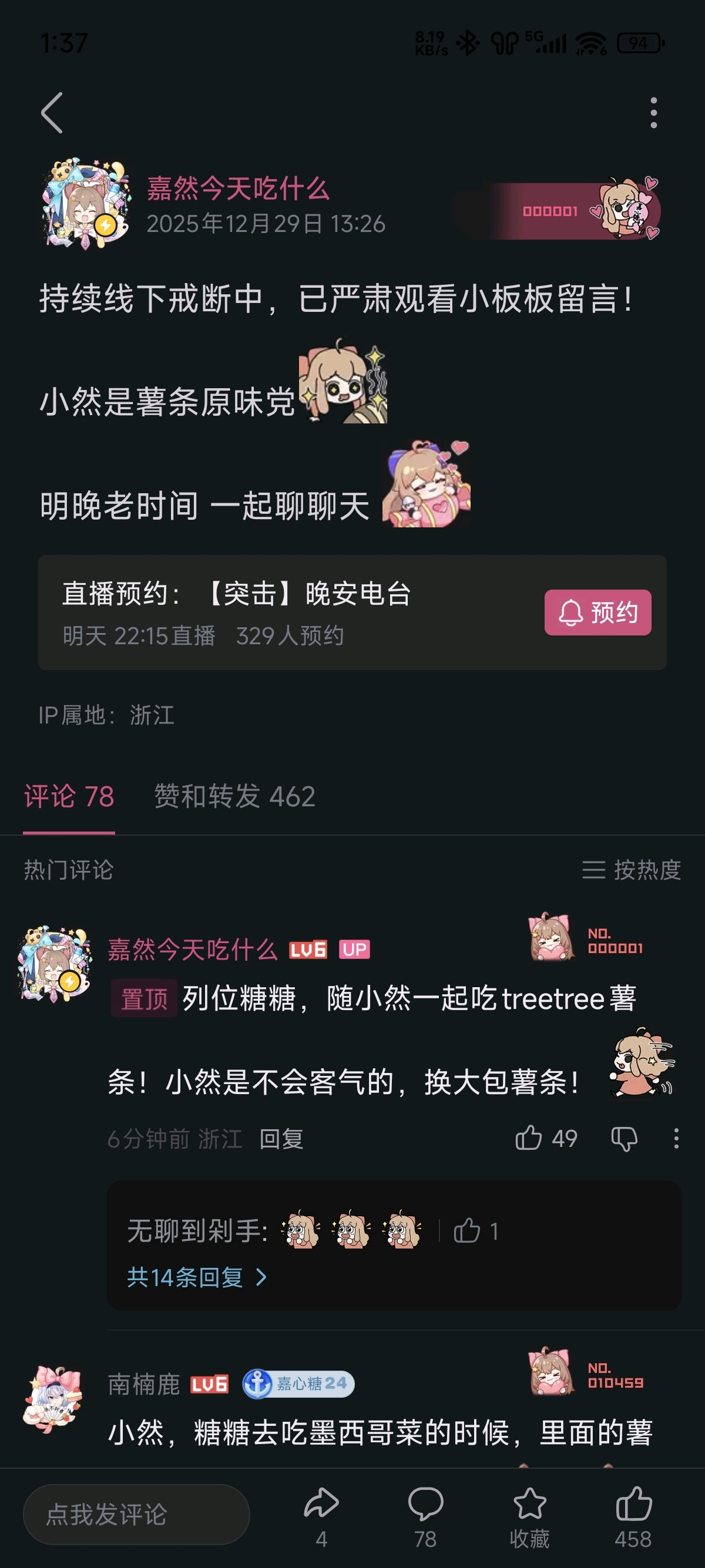 5楼1条pid:1530344827722025/12/29 13:56:04嘉然今天吃什么ㅤ7级 其实是小然我看贴吧骂摆烂的太多了,这才爬起来看又躺下算了开个突击吧🥱嘉煜户哓 🌠然然的小糖糖🌠 楼主 10级 小然你不要看贴吧,脏